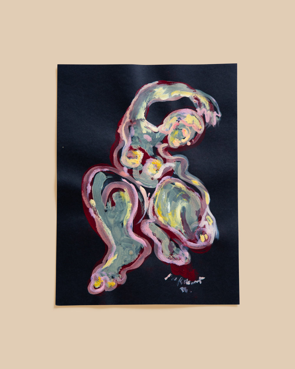 This India ink and pigment piece, Kneedown, is a one of a kind piece created exclusively for ARJÉ. Priced without frame. Custom frame options are available on request.