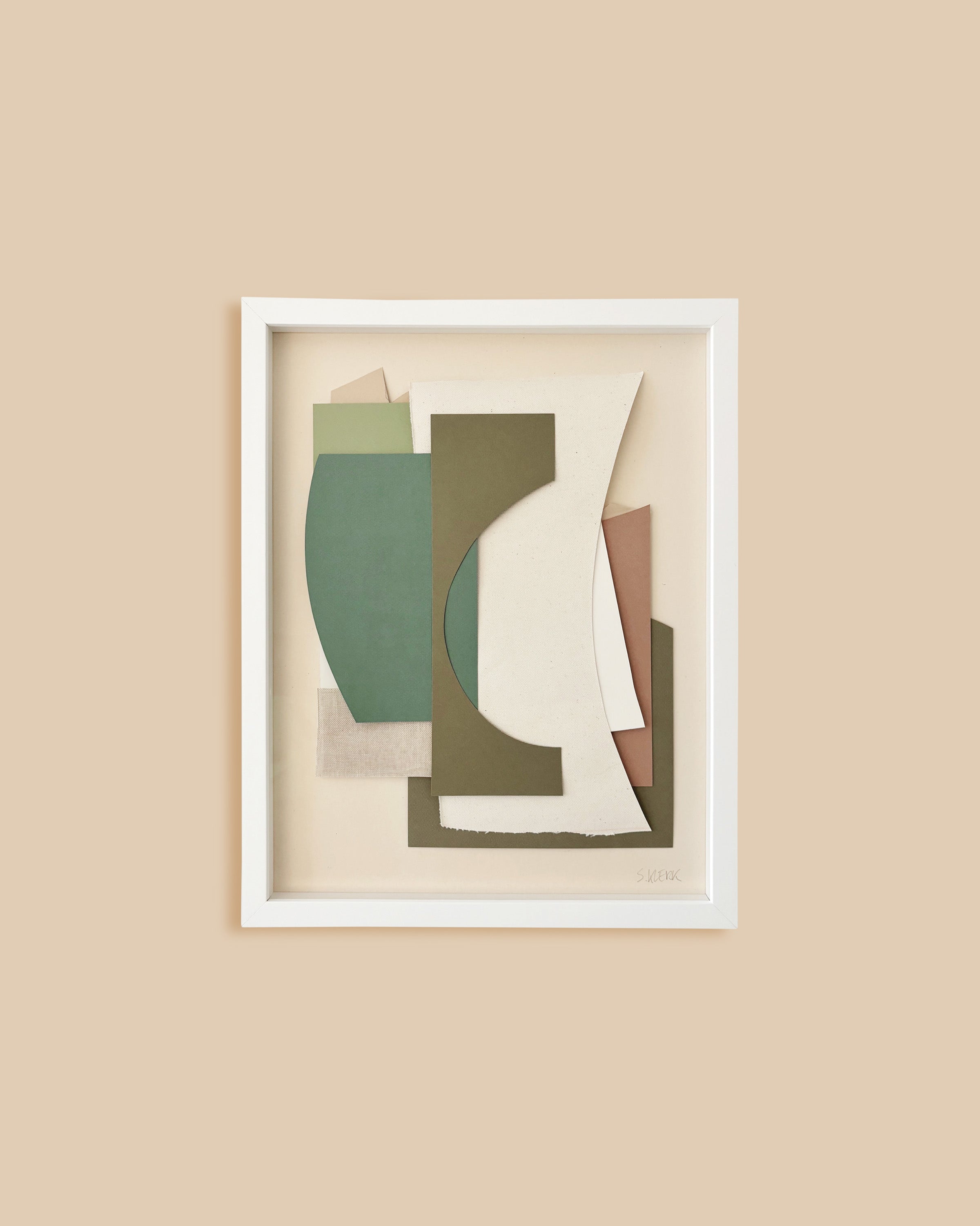 Klerk uses mixed media to create her collages—found paper and objects, sometimes photographs—that she layers and assembles together in abstract graphics rooted in texture and color composition. Created as part of an exclusive series for ARJÉ, No 3 is a collage of symbolic shapes that embody the ARJÉ philosophy of mind, body and spirit.
