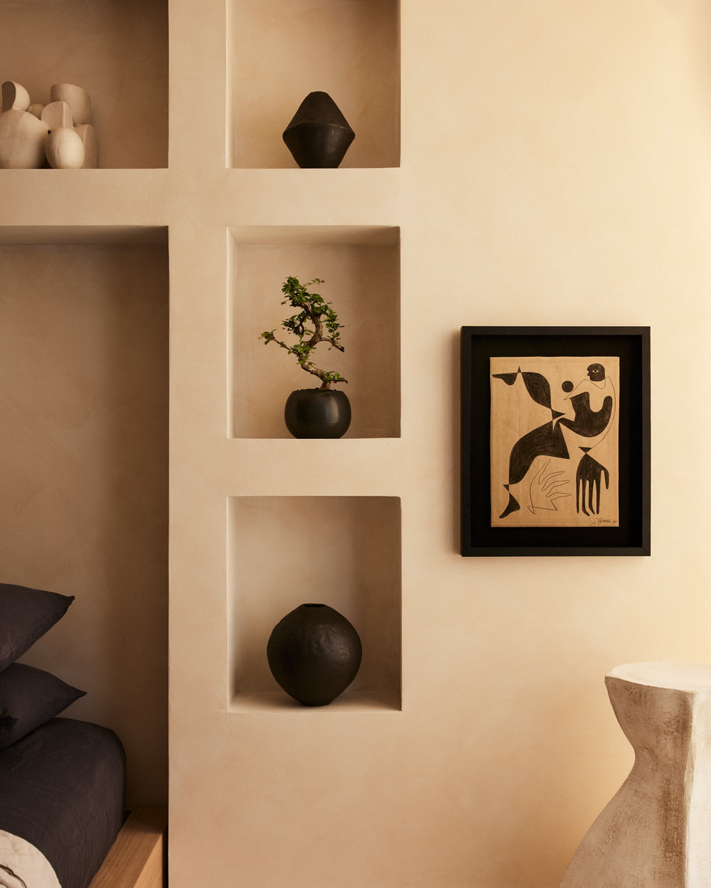 Los Angeles based fine artist Jessalyn Brooks creates distinctive, strong silhouettes of the female form. Drawing inspiration from the geometric lines of Cubism, she works out of the same studio she's lived in for ten years, using oil on canvas, or pencil on paper to incorporate elements of passion, the dualities of creation, and her own vision of women's bodies. "Symbol, beauty, romance, heroism, death, duality, joy, desire—these are all central in art and creation," she says.