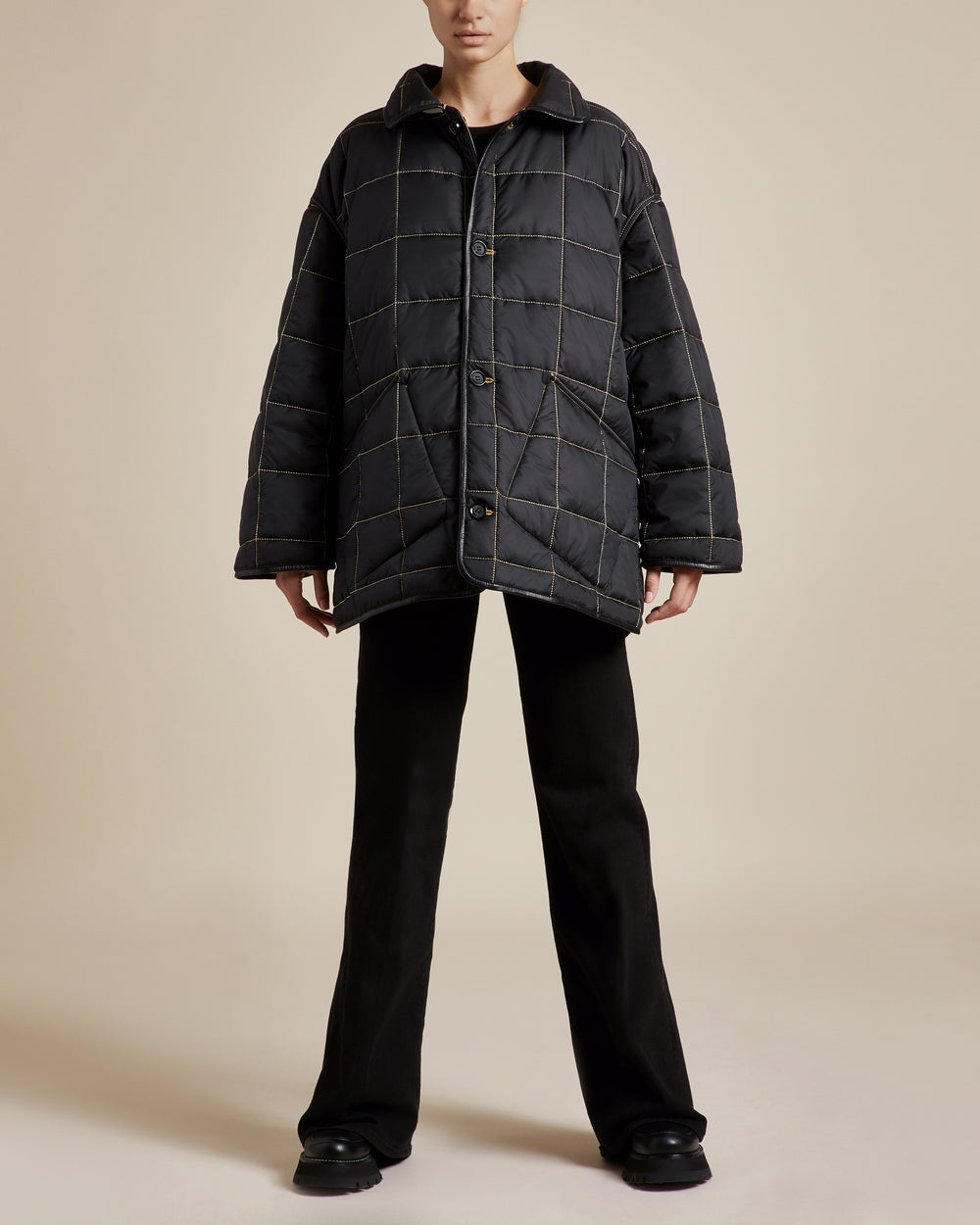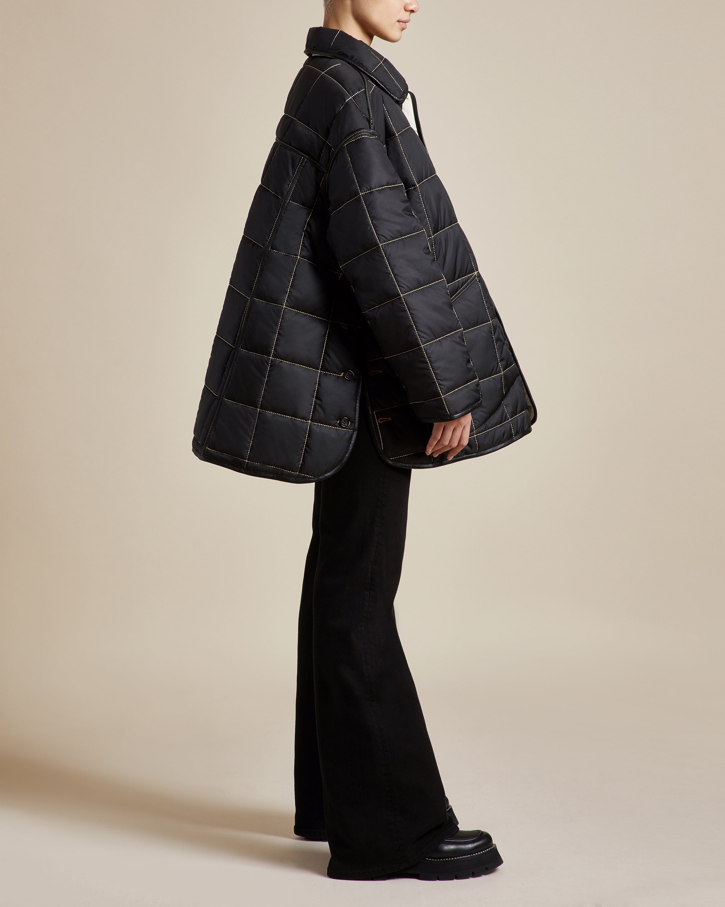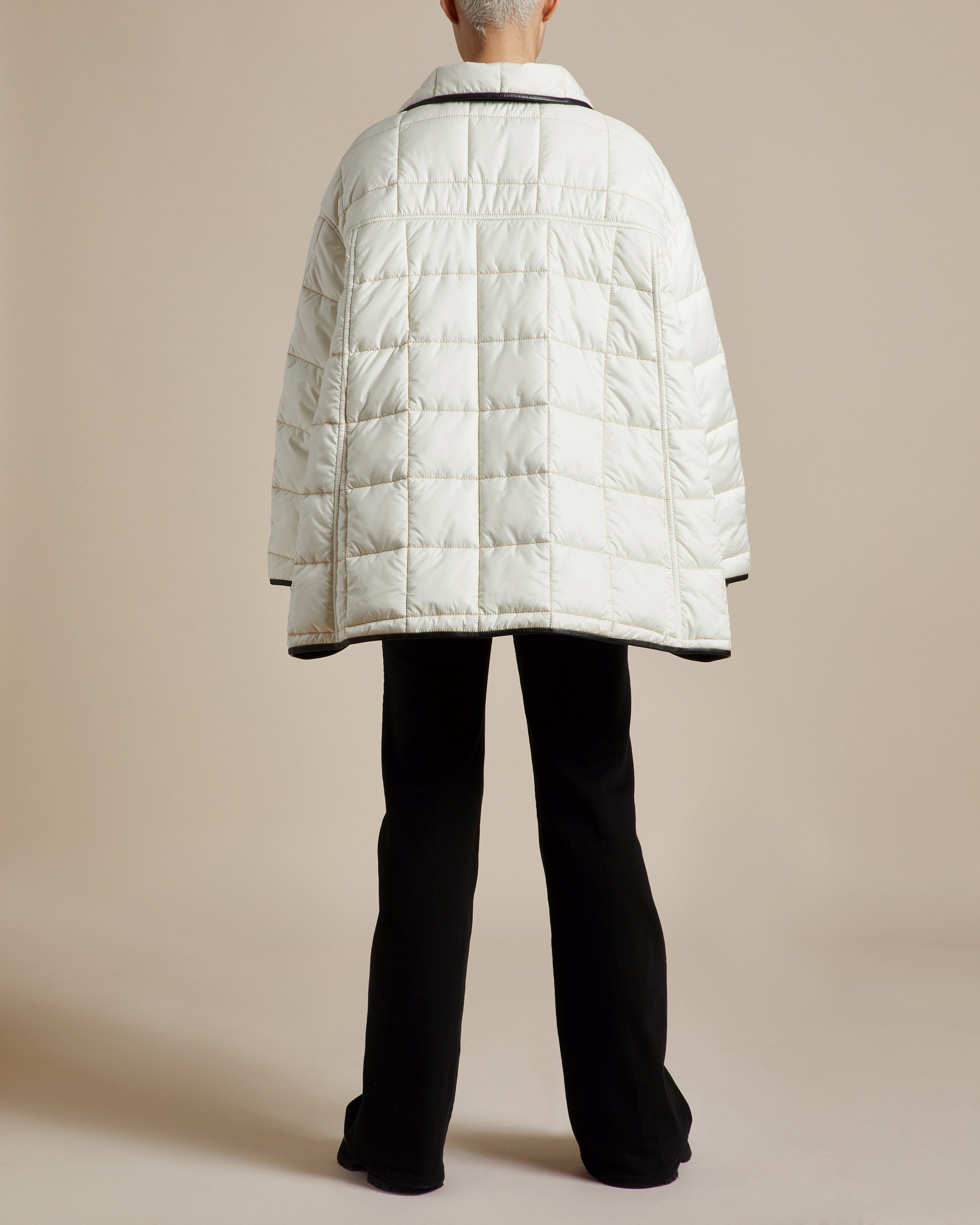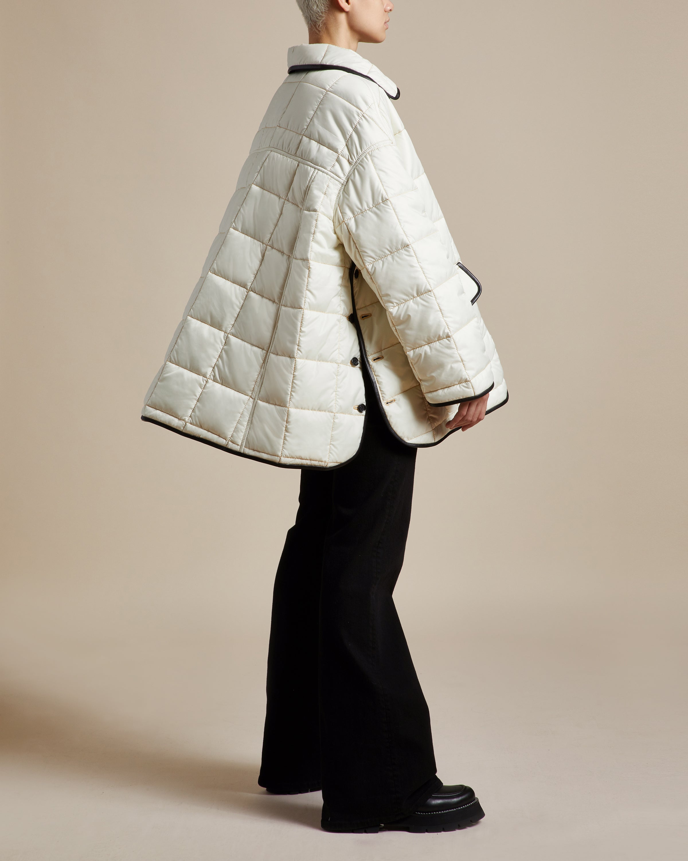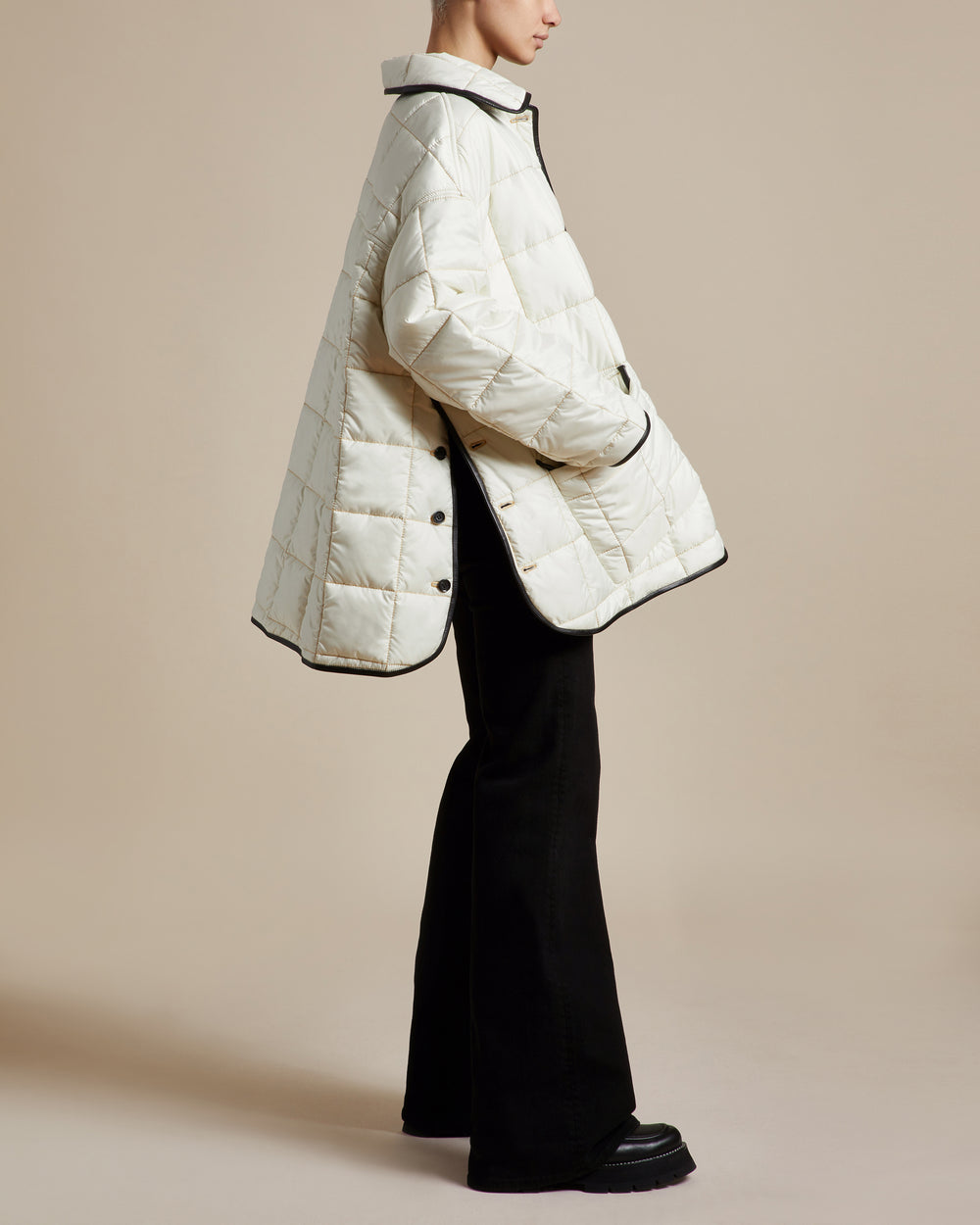 The Lila Reversible Nylon Quilted Jacket in Ivory, a reversible and water-resistant jacket, is a new addition to the Arjé Outwear Family. With both dramatic and unexpected proportions this will be your new weatherproof coat that transcends seasons. Embrace all parts of your personality and interchange how you wear this jacket throughout the day, enjoy alternating between each color.