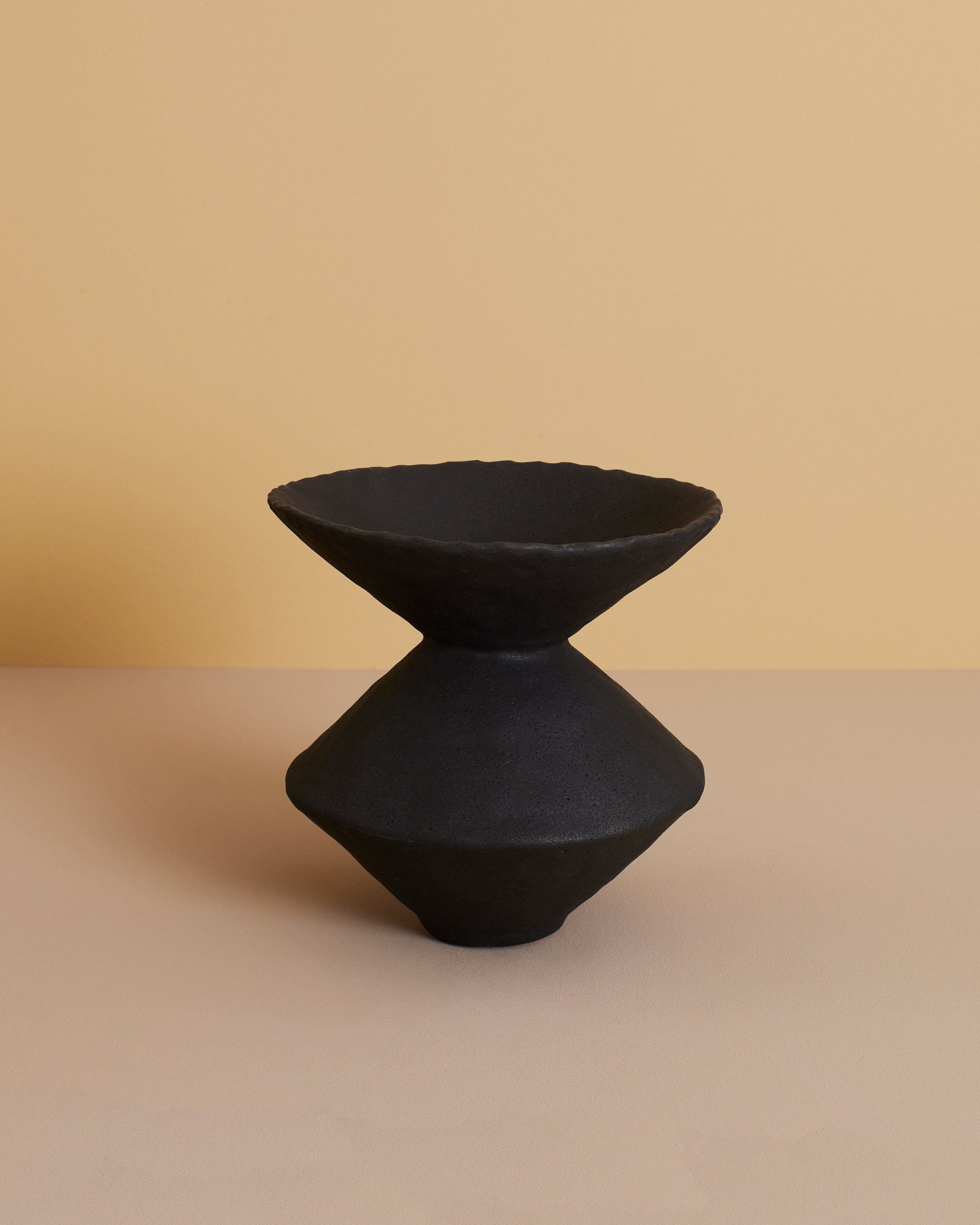 "I have always been interested in the domestic space and how our experiences within the home—a space of intimate exchange—affect and define how we live outside of our homes," says Hicks. "Ultimately, I want my work to be part of the beauty of people's everyday lives." This functional zig zag silhouette, done in a matte Anthracite Black, measures nine inches by nine inches—perfectly sized to hold a bouquet of flowers or branches, or as an accent piece alongside the rest of the series.