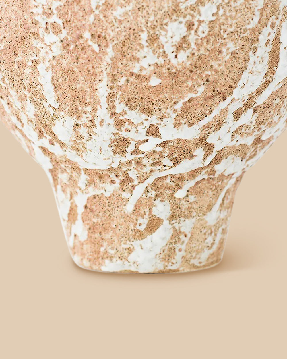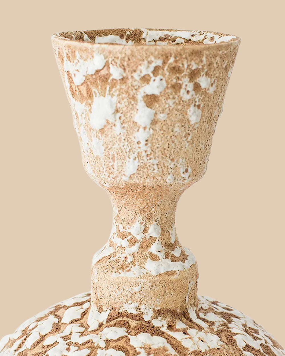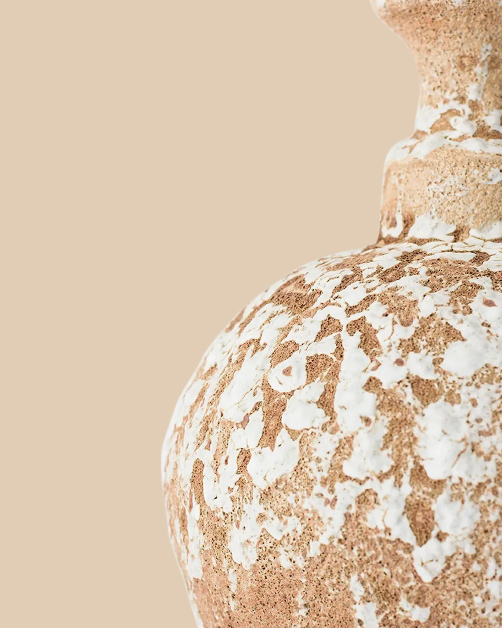 Brushed with experimental glazes, Isolated N.25 is a unique handbuilt ceramic vase with an ancient yet timeless appearance. This glazed handbuilt vessel is made from stoneware with grog from Manises, Spain, and brushed with experimental glazes and a textured surface, resulting in slight variations with each piece.