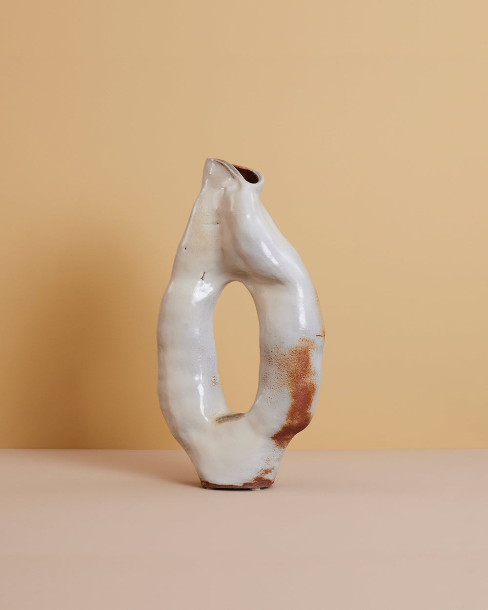 The Vida Vessel is a glazed stoneware vase created by Arjé. This dramatic modern vase is a one-of-a-kind, handbuilt stoneware functional art piece that adds poetry and a sense of grace to its environment.