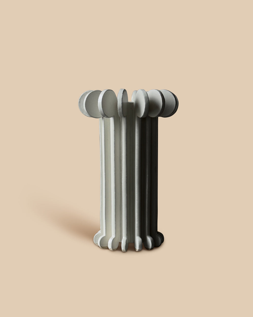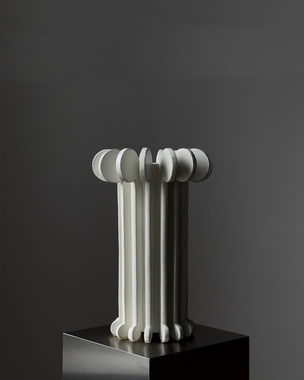 Vessel No. Eight in Ivory by Devin Wilde is a refined ceramic piece that showcases the artist’s skill in blending form and function. This hand-crafted vessel features clean, vertical lines with subtle spherical accents, all brought together by a smooth Ivory finish. Each piece is meticulously shaped, fired, and finished in Wilde’s Brooklyn studio, ensuring a distinctive texture and quality.