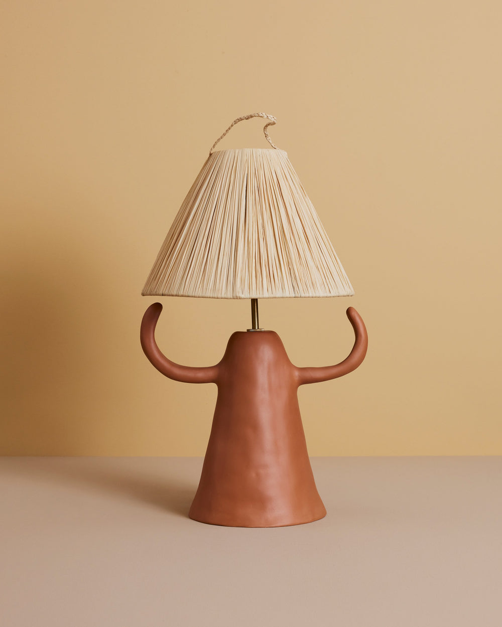 Handmade in Barcelona, Spain by ceramicist Marta Bonilla, The Donna Lamp is a terracotta table lamp that brings personality and a mediterranean warmth to any room. Each sculptural light is finished with a straw lampshade and is made to order by Marta. This rustic ceramic lamp stands at fifty-three centimeters in height.