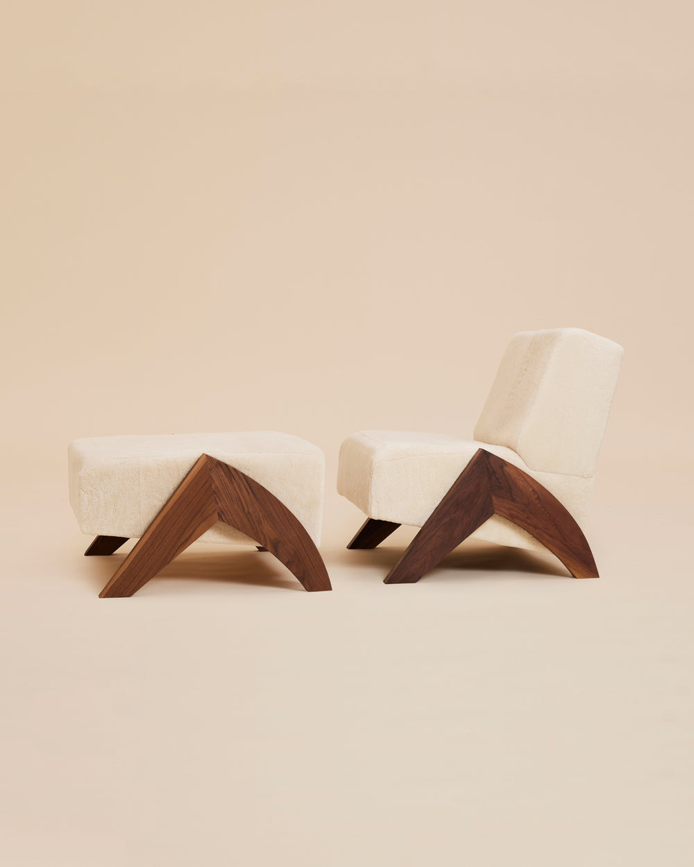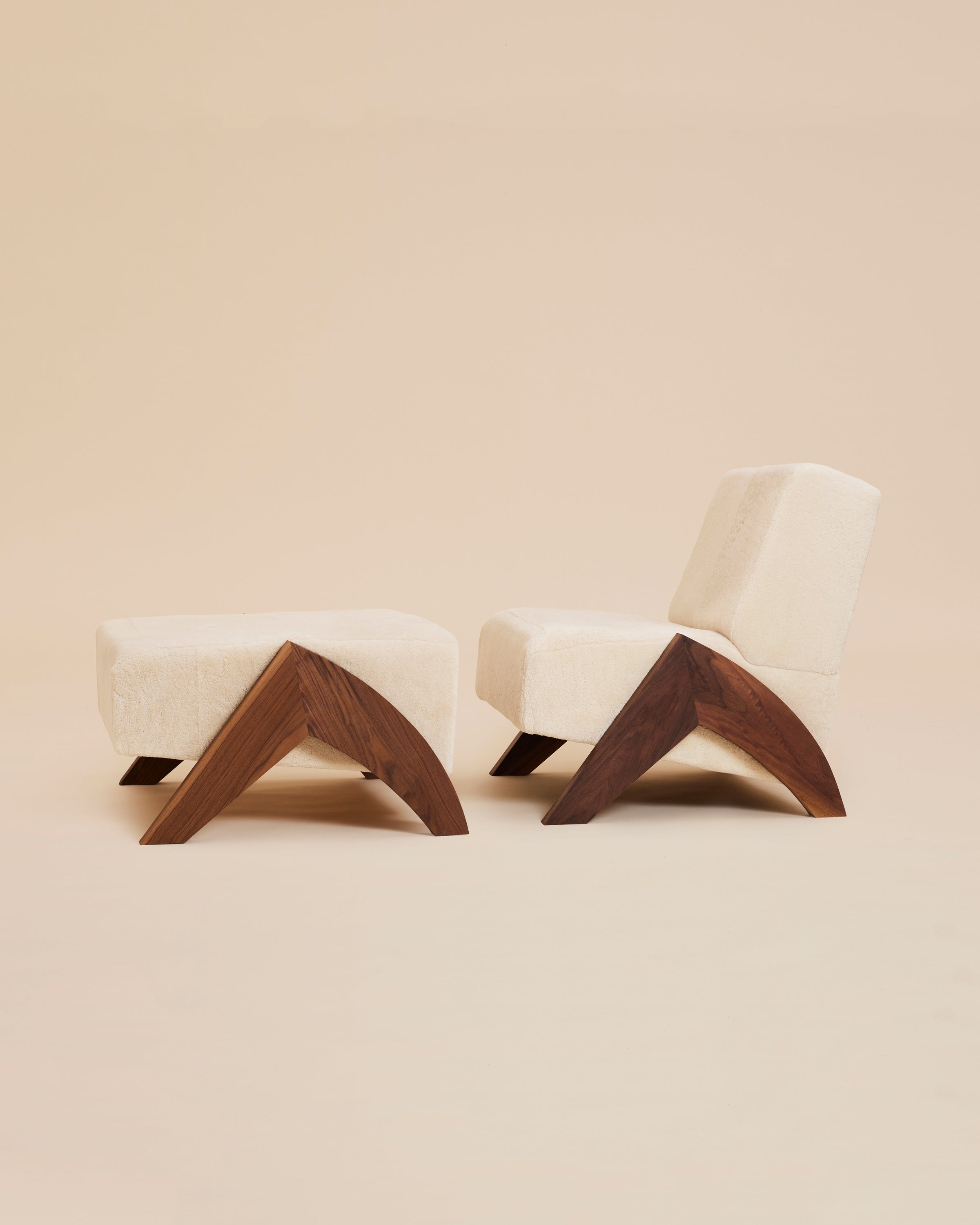 The perfect extension of the Enzo Chair, together the two symbolize strength and comfort. Inspired by our own shearling outerwear, Enzo means "ruler of the home," and is crafted to order in Brooklyn, New York from fine shearling and black walnut harvested along the North East in USA. The cozy shearling seat and walnut wood legs provide elegant comfort.