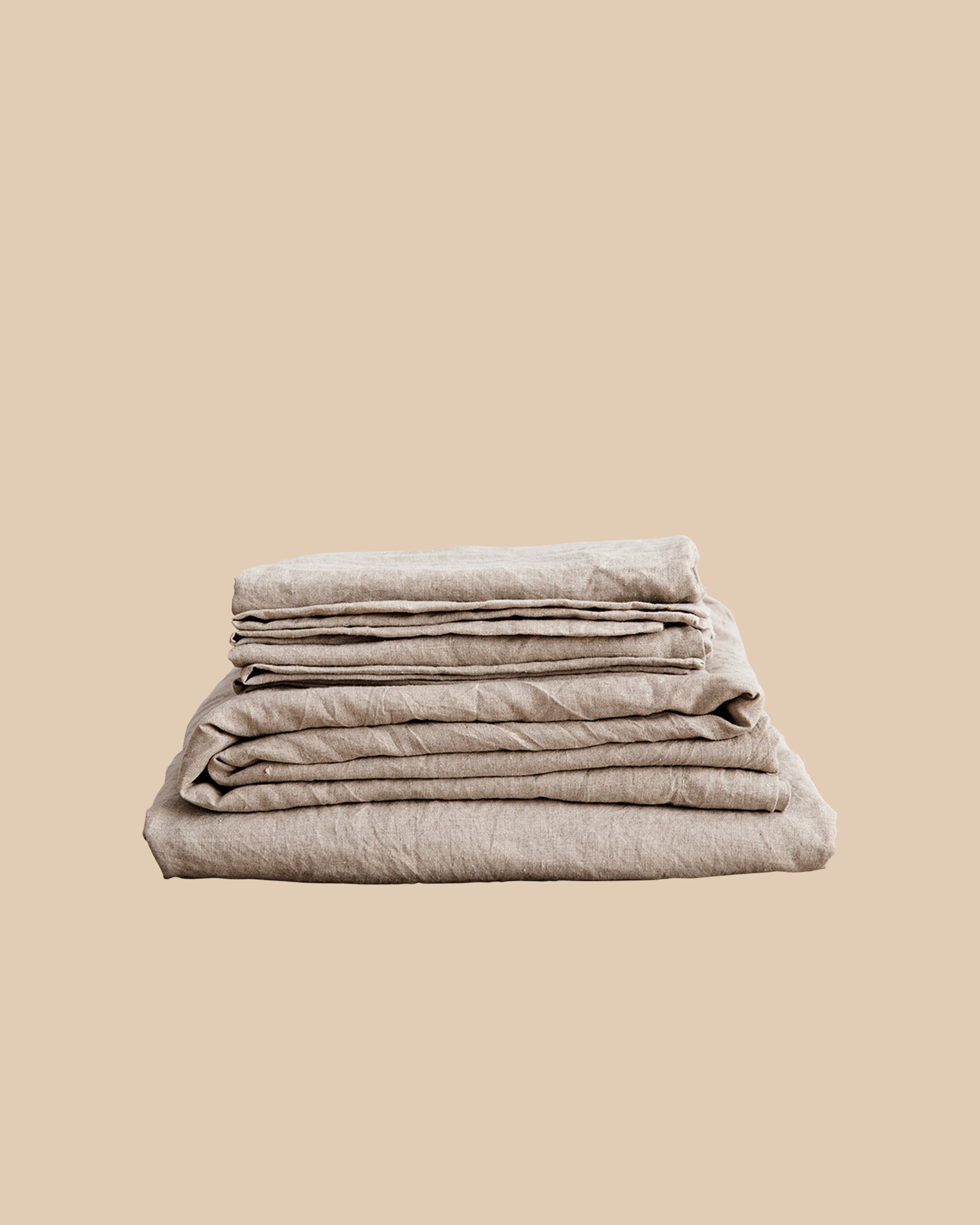 Cultiver weaves their linen bedding from pure European flax, washes it for added softness, and offers a range of beautiful colors that showcase linen's natural texture while bringing warmth and calm to the bedroom.This Natural set includes two pillowcases, one flat sheet, and one fitted sheet, and pairs nicely with the Slate set for a gentle contrast.