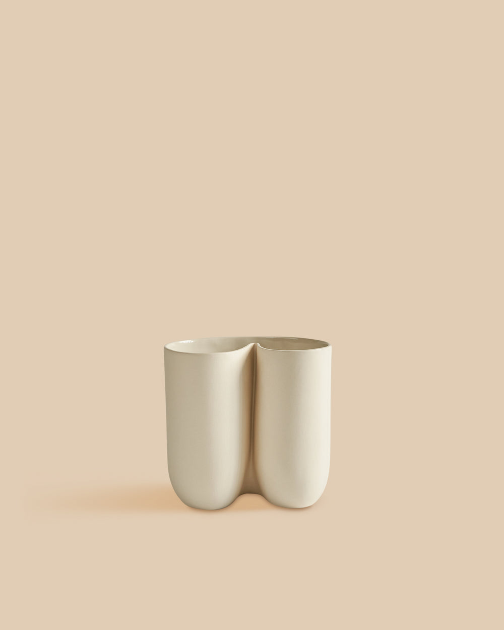 Finished in a Hand Sanded porcelain exterior with a Glossy Clear glazed interior. This vessel is watertight and functional for fresh or dried arrangements.