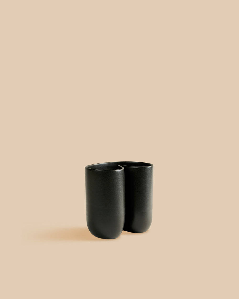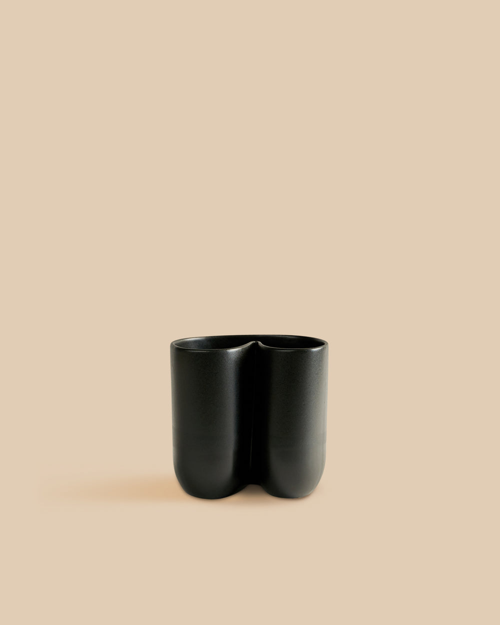 Finished in a Matte Charcoal glaze both inside and out. This vessel is watertight and functional for fresh or dried arrangements.