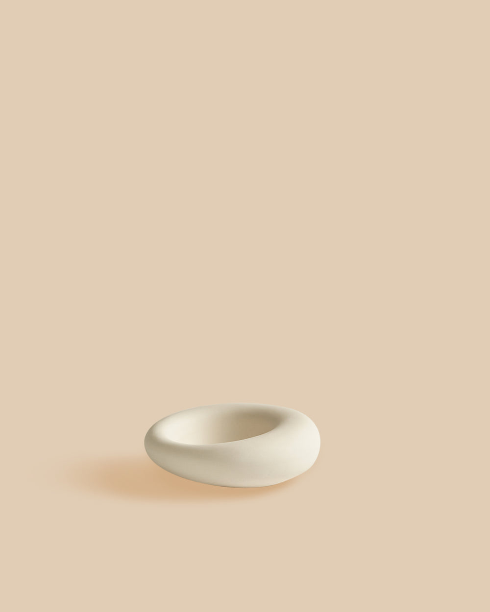 This unique sculptural piece by Dust + Form is a handmade ceramic decorative dish finished in a Satin Ivory glaze that evokes a feeling of connection and togetherness.