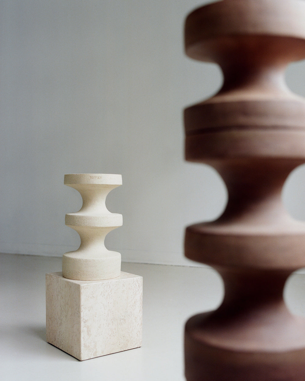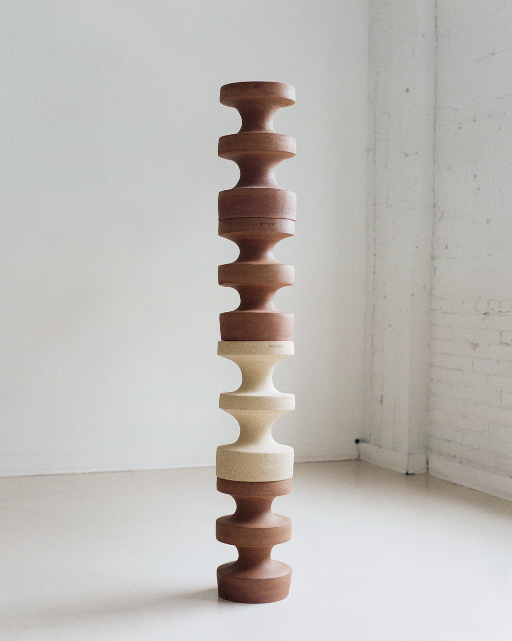 Side Table No.I ,by Zeynep Boyan, is a totem inspired sculptural accent piece crafted from stoneware clay. Entirely sculpted by hand without a mold using traditional coiling techniques, it is part of a limited edition series.