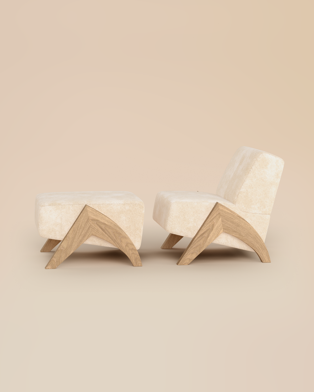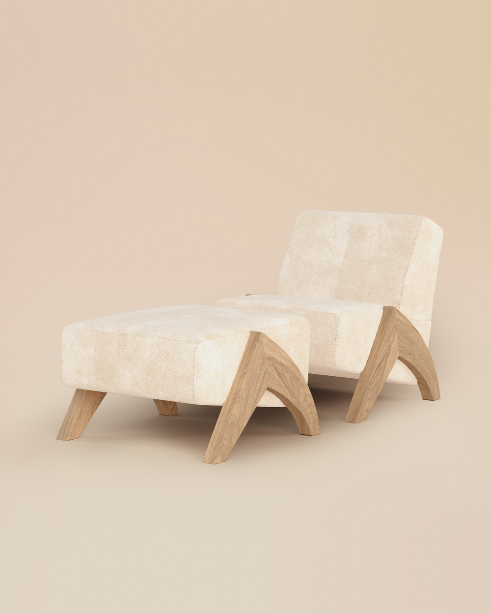 The perfect extension of the Enzo Chair, together the two symbolize strength and comfort. Inspired by our own shearling outerwear, Enzo means "ruler of the home," and is crafted to order in California from fine shearling and oak wood. The cozy shearling seat and oak wood legs provide elegant comfort.