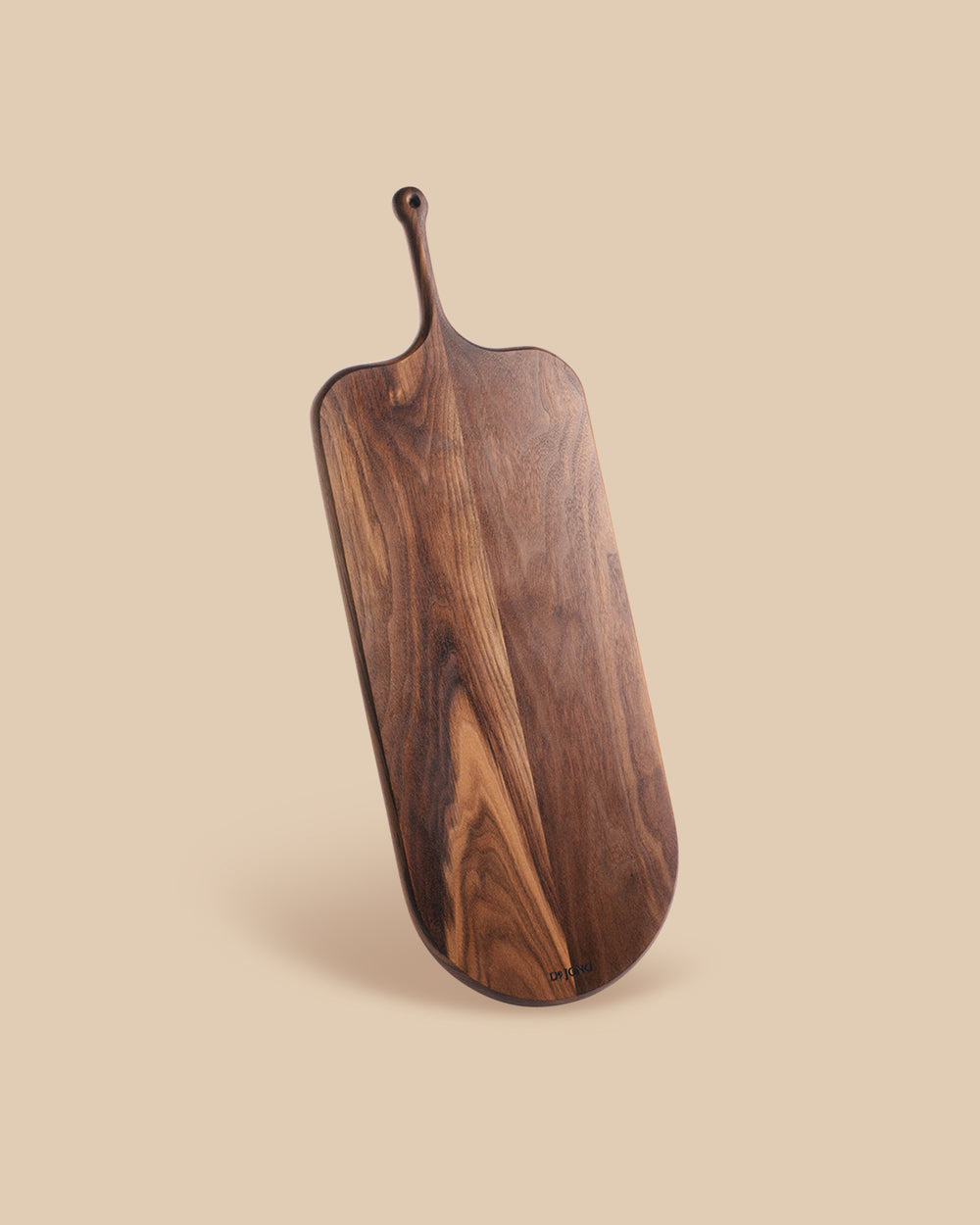Referencing traditional forms through a contemporary lens, PARE creates wood furniture and food-safe goods in enduring, elegant silhouettes. This hand-crafted walnut serving board captures the beauty of simplicity and the soul of shared meals. Finished by hand with a food-safe oil and wax, it reveals the natural grain and warmth of the wood, perfect for serving bread, cheese, or a casual charcuterie spread.