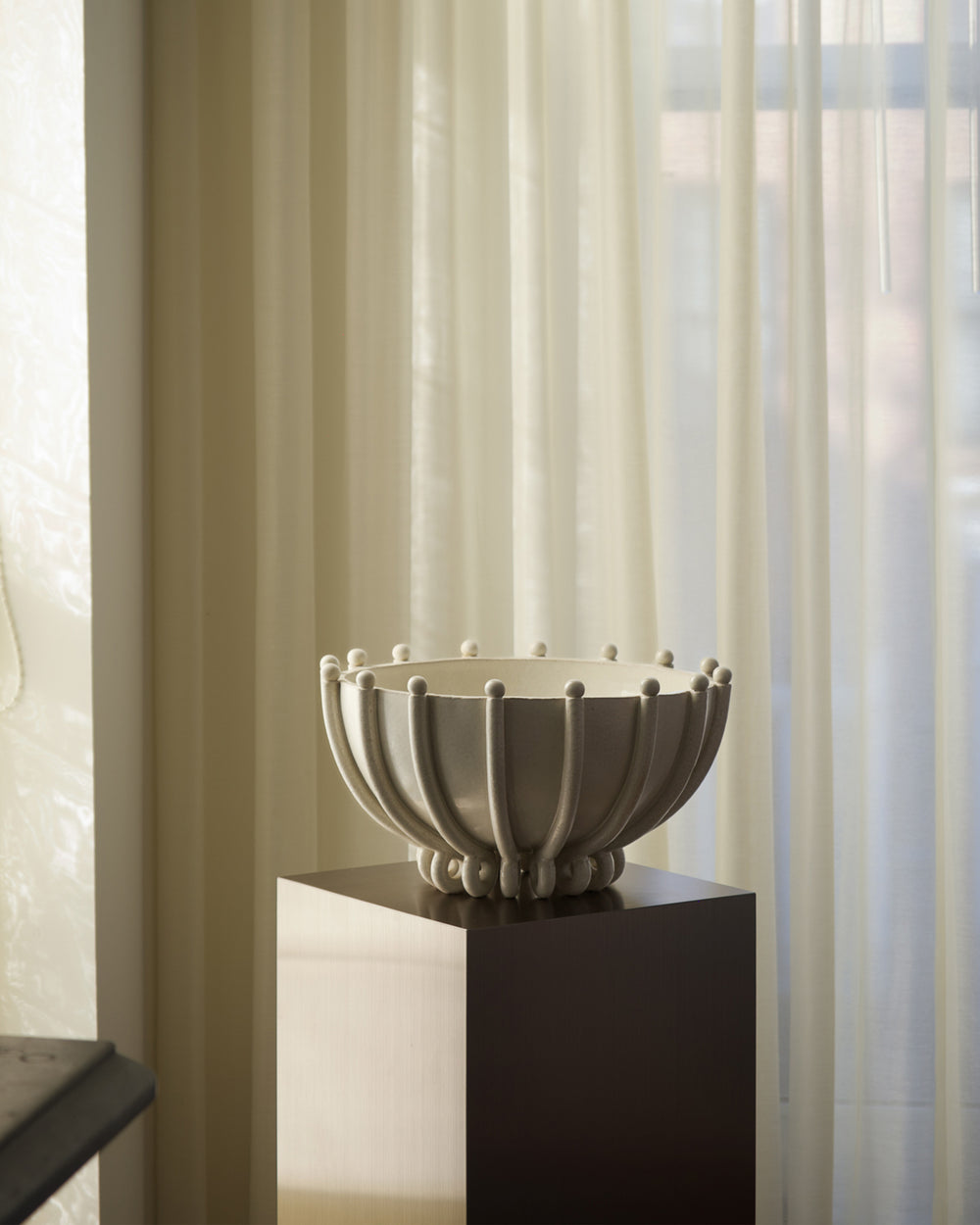 Vessel No. Five in Ivory by Devin Wilde combines simplicity and elegance in a beautifully crafted ceramic piece. This bowl features smooth, graceful curves with vertical lines and spherical accents that add visual interest. The Ivory finish gives it a classic, versatile look that fits seamlessly into any décor. Hand-crafted in Wilde’s Brooklyn studio, each bowl is shaped, fired, and finished with exceptional care.