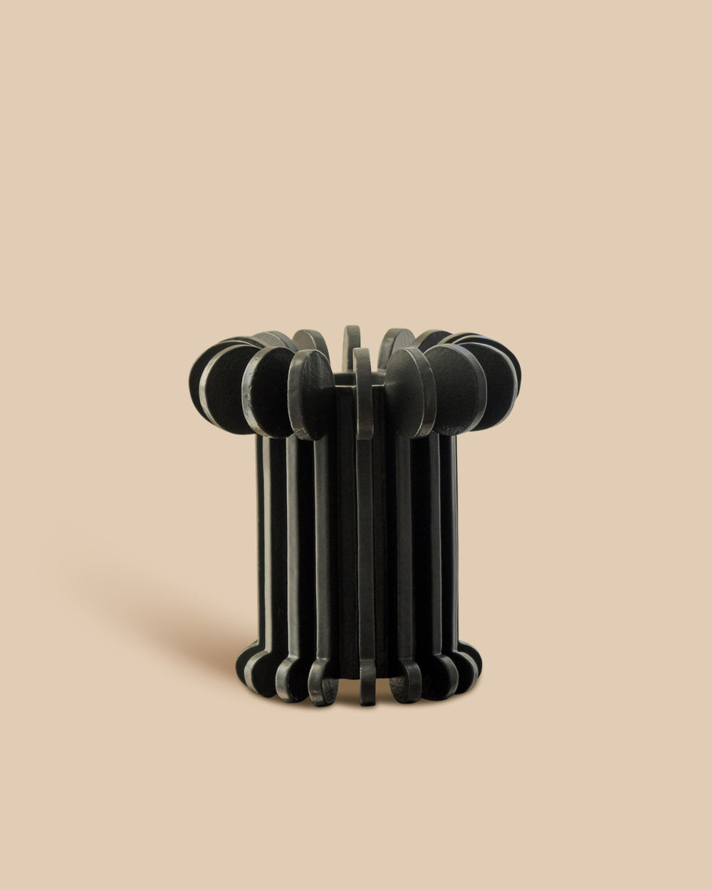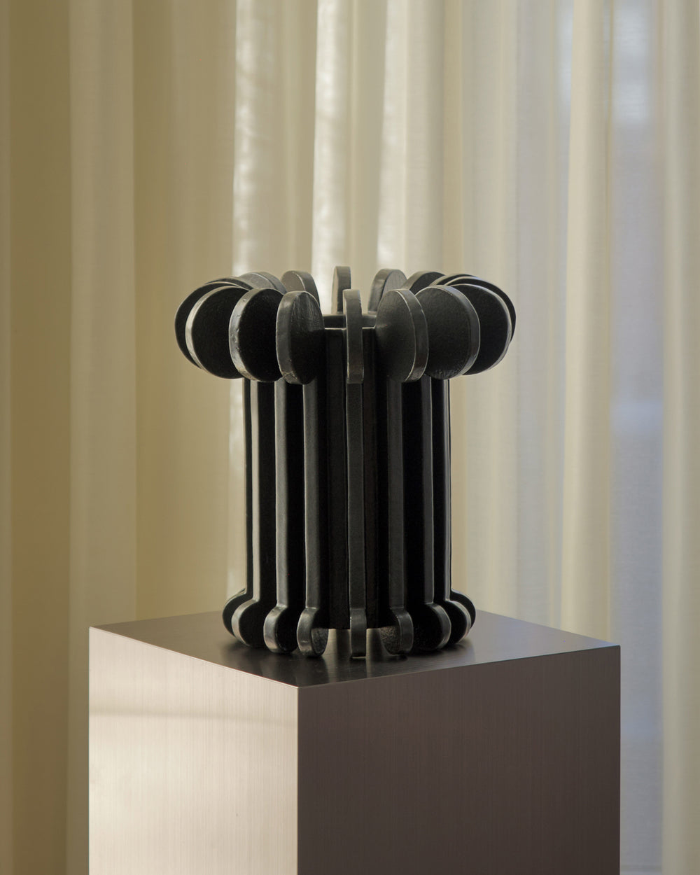 Standing eleven inches tall and nine and half inches in diameter, this Vessel is both a functional and decorative object. Wilde's exploration of shape and shadow is evident in the piece's design, which plays with light to create a dynamic visual effect. "The interplay of light and form is central to my work," Wilde notes. This vessel is perfect for adding a touch of elegance and architectural interest to any space.