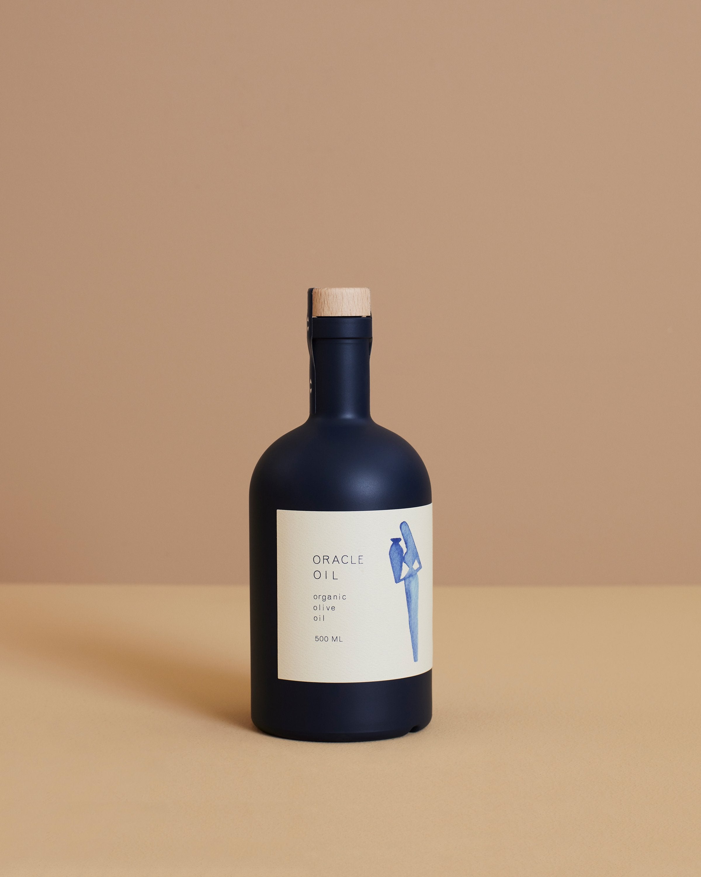 Oracle is packaged in a navy-blue bottle designed by the artist Alejandro Cardenas, and UV-coated to prevent any oxidation through light exposure, and each bottle is filled and sealed in Laconia and labeled with a date of harvest.