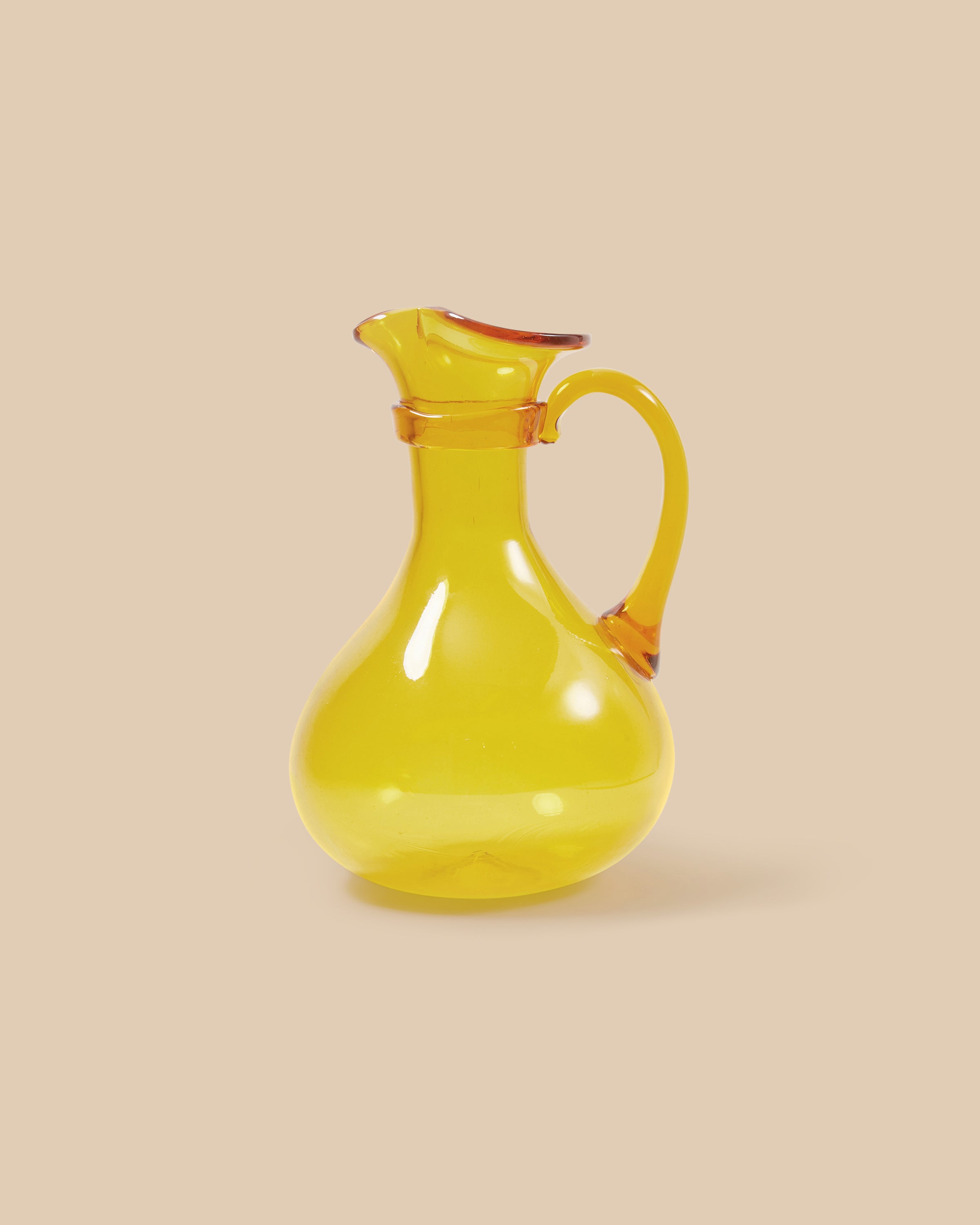 The versatile Pienza Glass Pitcher is an elegant, yet functional piece with a warm amber hue that infuses this unique glassware.