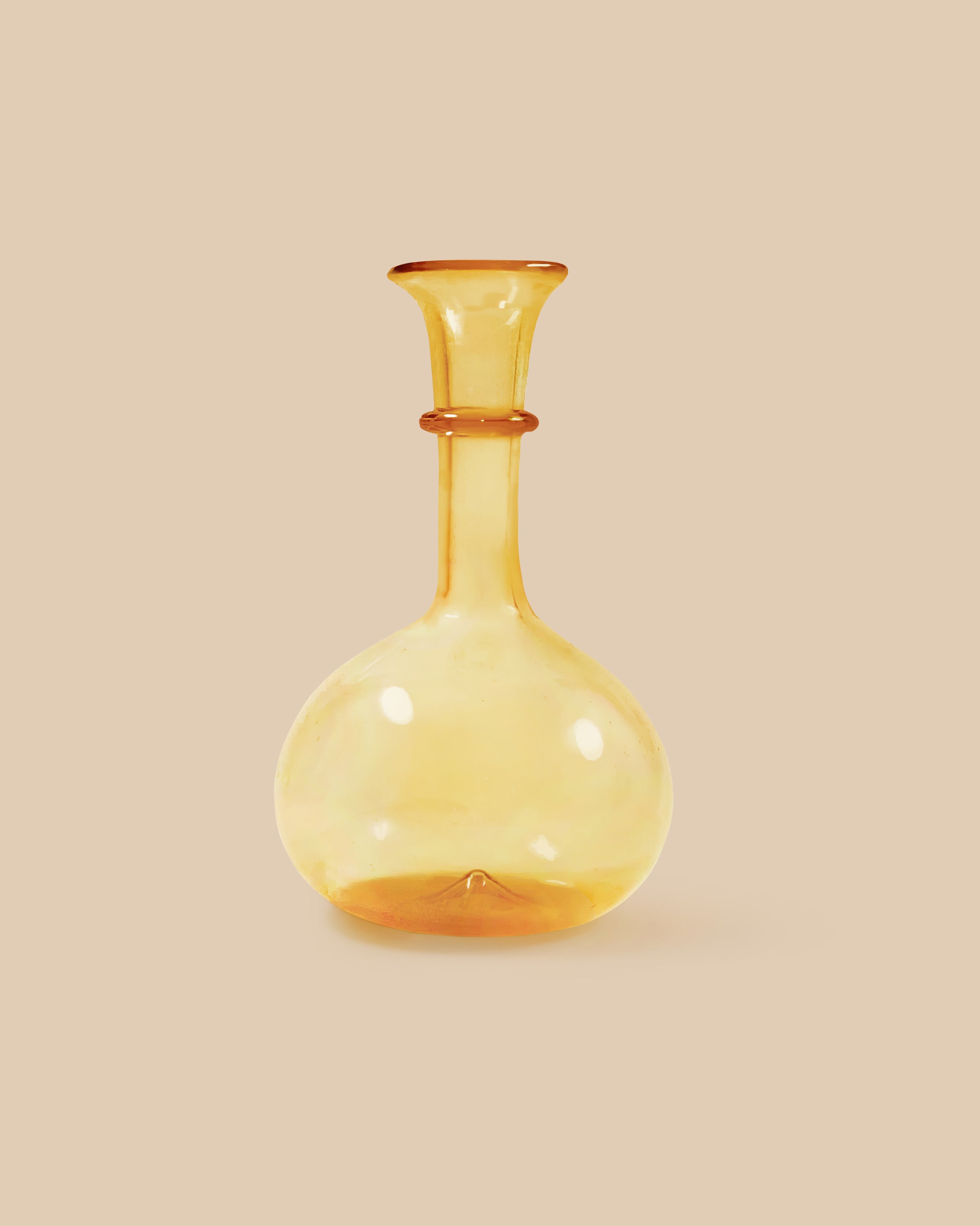 The Pienza Glass Round Decanter is a distinctive round glass decanter with amber glass to help add warmth to the spherical wine carafe.