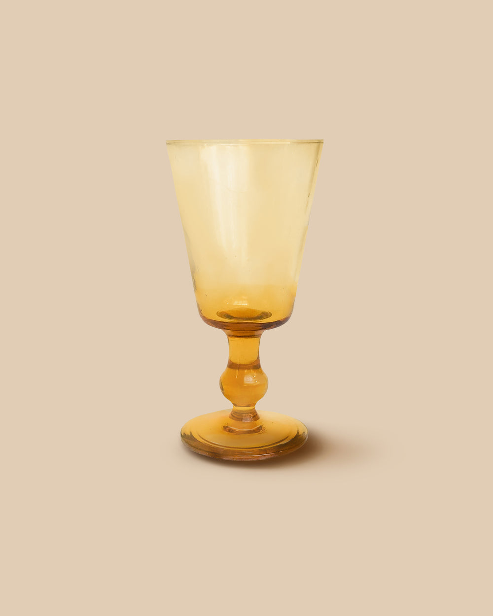 This elegant glass goblet made from rich amber glass can be used for water or wine. The unique warm amber color adds to the sophistication of this stemmed glassware.