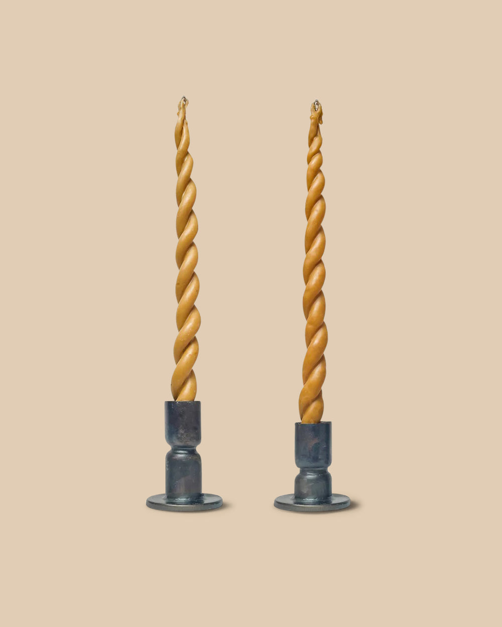 Il Buco Vita's uncomplicated wrought iron candle holders are hand-forged in Umbria, Italy. This process, one of the oldest known metalworking techniques, involves heating a piece of iron until malleable and then applying a range of tools to flatten and stretch the metal with care to the desired shape. Wipe clean with a soft damp cloth. We suggest to buy in multiples for a unique table centerpiece. These artistic iron candle stands make a unique table centerpiece.
