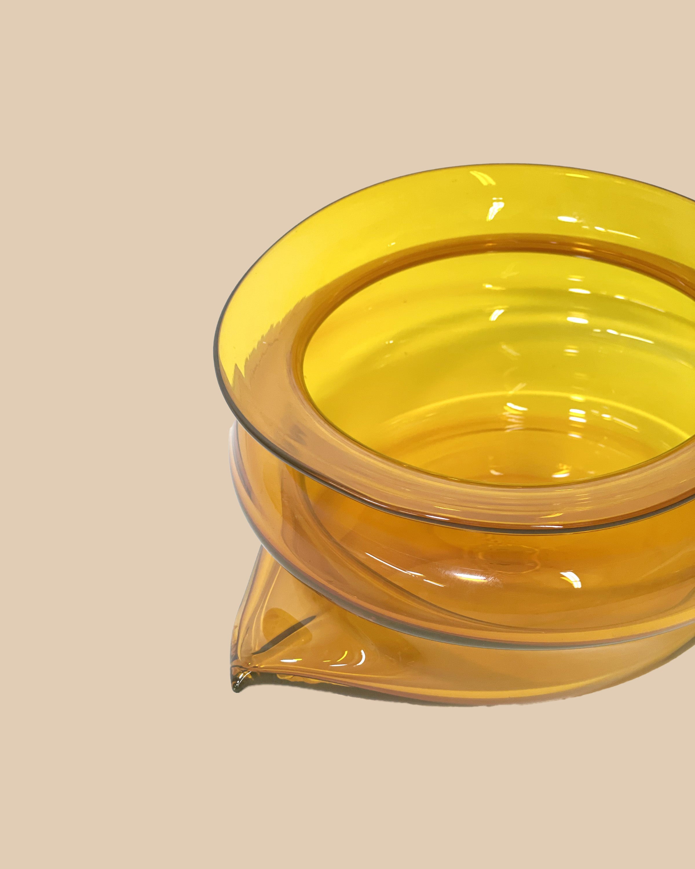 Sticky Glass is a New York based design company developed by Grace Whiteside that specializes in multi-functional, performative and collaborative glasswork. Each glassware piece is hand blown and made to order in Brooklyn, using a process that experiments with glass in its honey-like molten state, exploring the possibilities of form and function—allowing the final product to appear fluid, soft, and tacky.