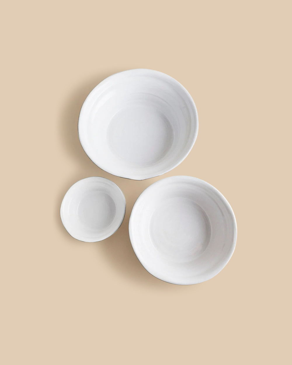 Materials: Each piece is individually thrown on the wheel, hand glazed in a lustrous white glaze, and double baked.