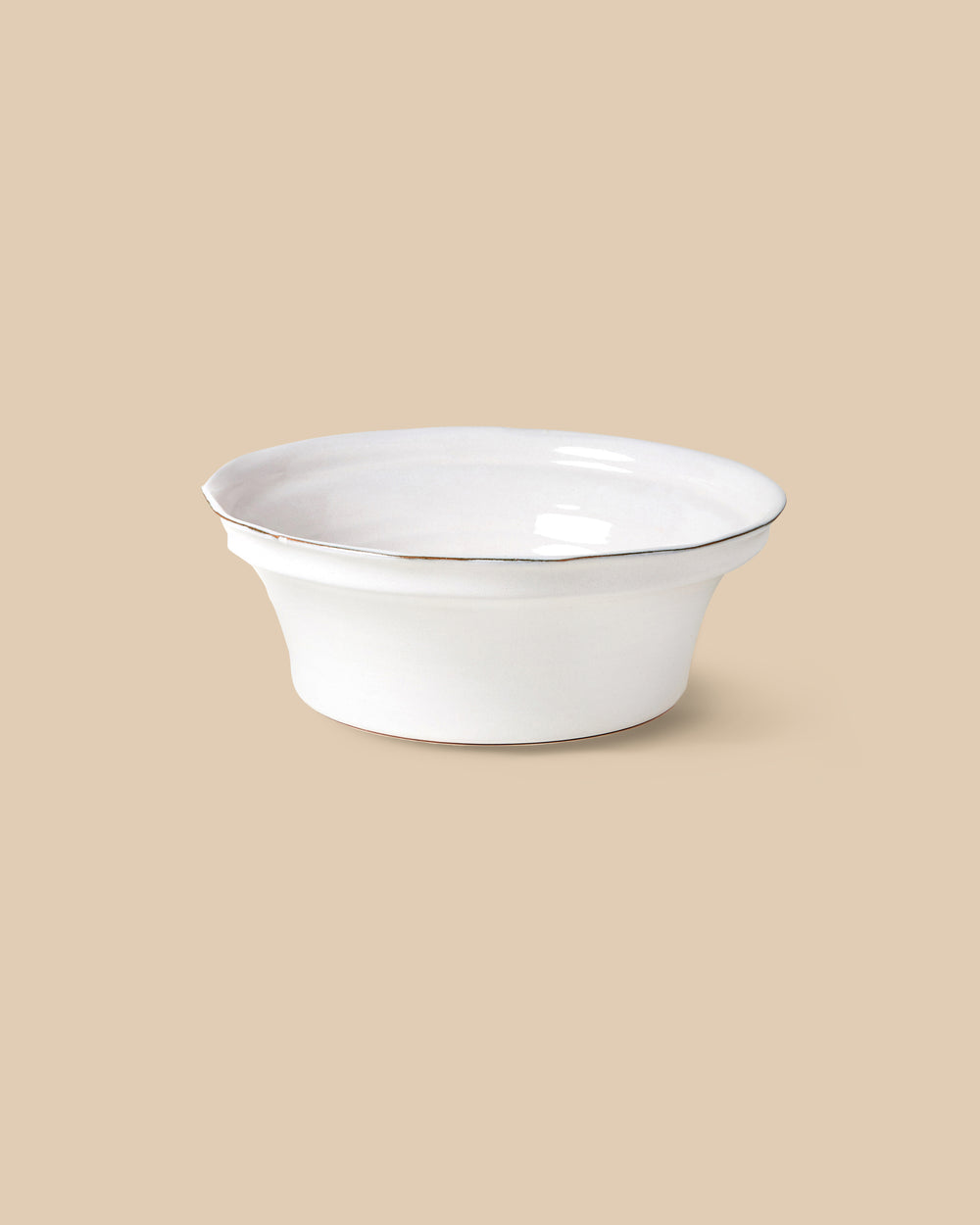 The Bevagna line by Il Buco Vita by is produced in small batches in Perugia, Italy using the rich red earth of the region. Each piece is individually thrown on the wheel, hand-glazed in a lustrous white glaze, and double-baked. A green accent at the rim emphasizes elegant, handmade forms. This unique ceramic serving dish, available in three sizes is an entertaining essential. Enjoy all three sizes for your culinary creations and make them center stage on your dining table or serving counter.