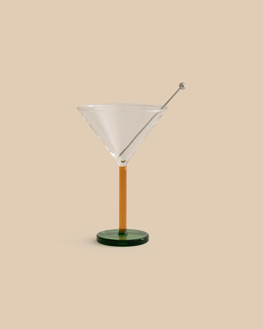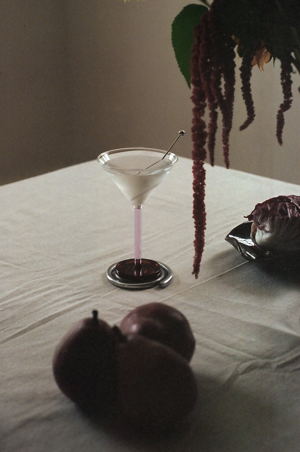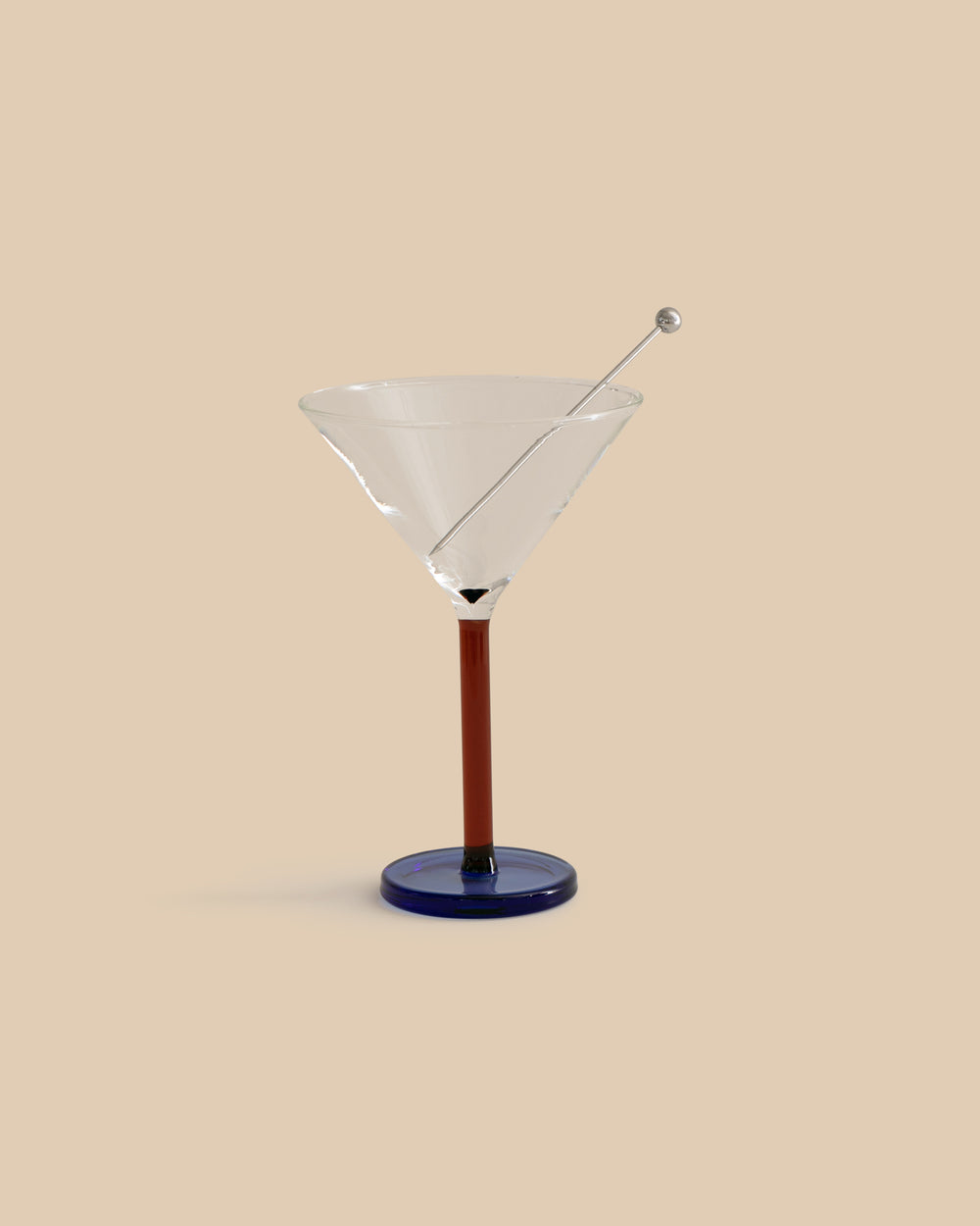 The Piano Cocktail Glass Set by Sophie Lou Jacobsen is a modern take on the jazz clubs of New York's gilded age. This set includes two cocktail glasses, each in a mismatched yet complementary color combination, with one featuring a pink base and the other a purple base. Crafted with precision, the glasses come with two stainless steel garnish skewers. Perfect for adding a touch of vintage sophistication to your cocktails, this set pairs style with function for the ultimate serving experience.