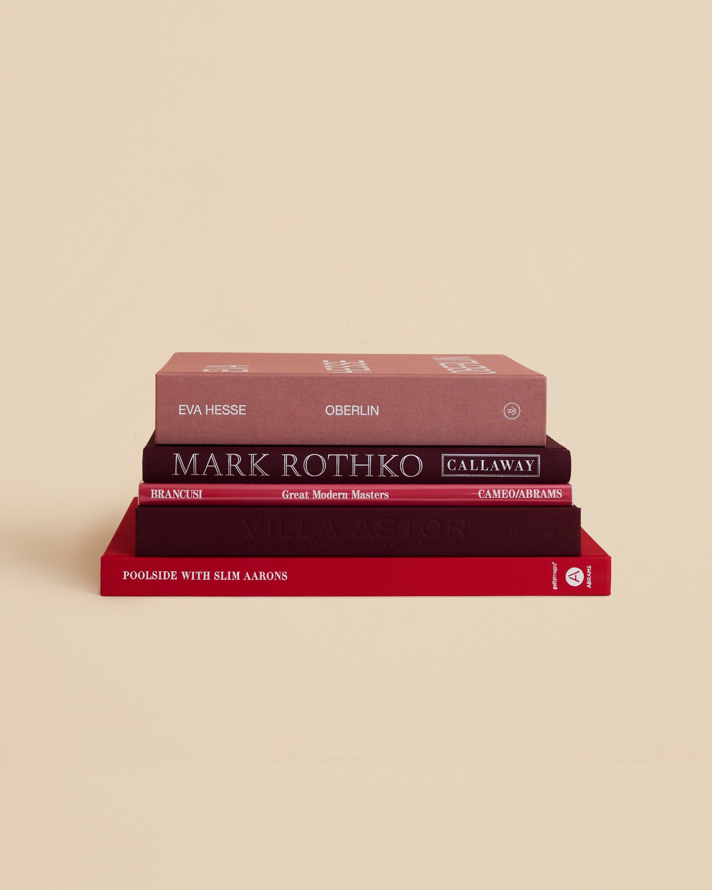 Each hand-selected mix of titles, including some rare and vintage, is sourced in collaboration with the Los Angeles-based Maison Plage. The Rouge Book Stack is a unique stack of coffee table books that boasts an eclectic mix of old and new works donning vibrant red covers, creating an impressive stack of reading material. It features one-of-a-kind titles, including Oberlin by Eva Hesse; Mark Rothko: The Exhibitions at Pace; Brancusi (Great Modern Masters) by Faerna and Jose Maria; Villa Astor's Paradise Restored; and Poolside with Slim Aarons.