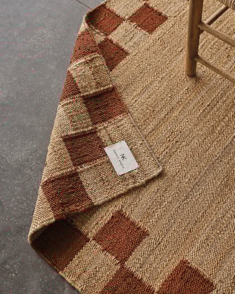 The modern rustic design Jute comes in a range of graphic patterns and uplifting color accents, which have been handcrafted using traditionally woven all-natural plant fibers. The enduring material features a rugged, brown melange with characteristic irregularities, making each piece unique.