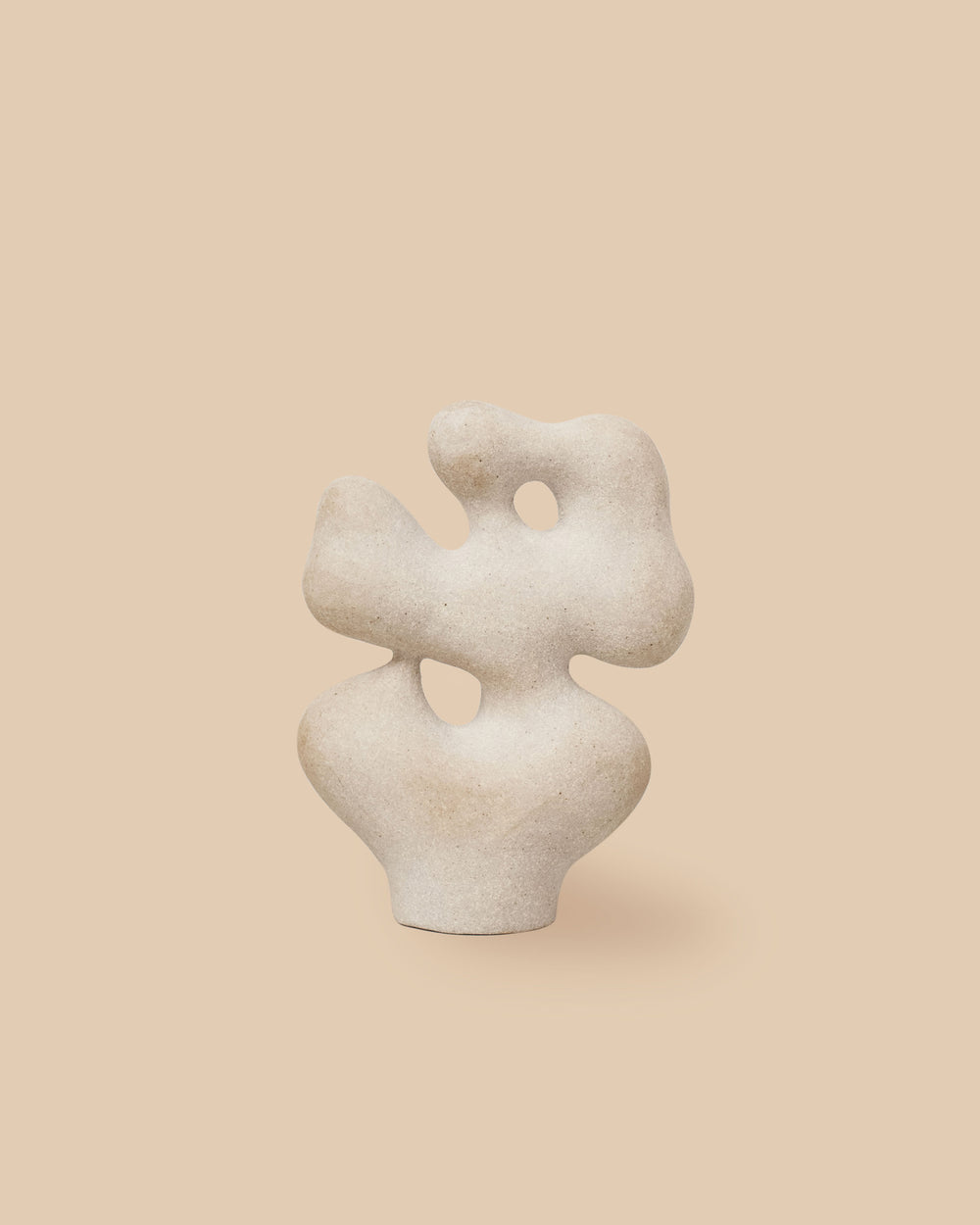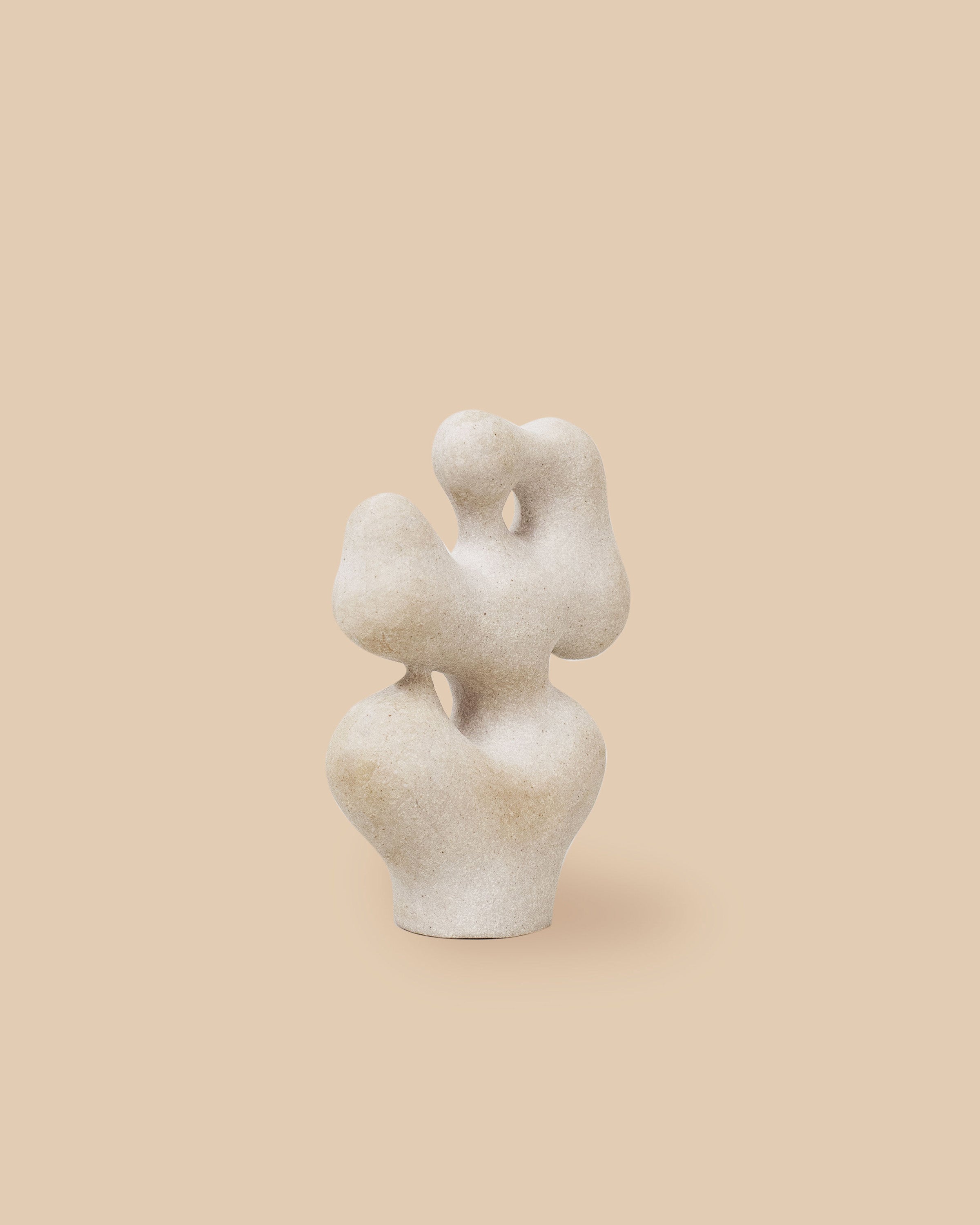 The Formation Stone Sculpture is a unique stoneware figure evoking the human body, made from locally sourced materials. It's a perfect accent for a bookshelf or tabletop.