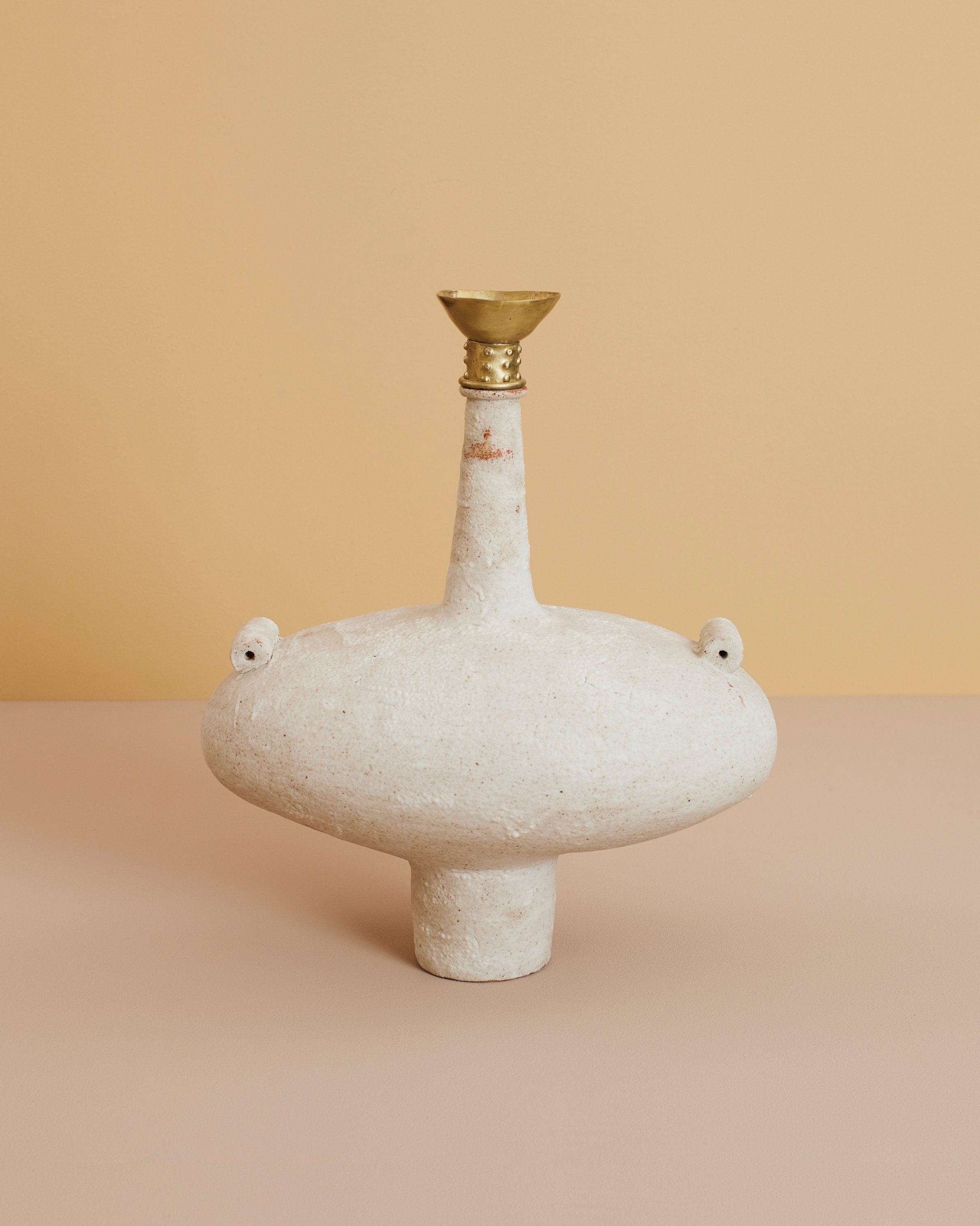 Material: Glaze stoneware vase + brass details.