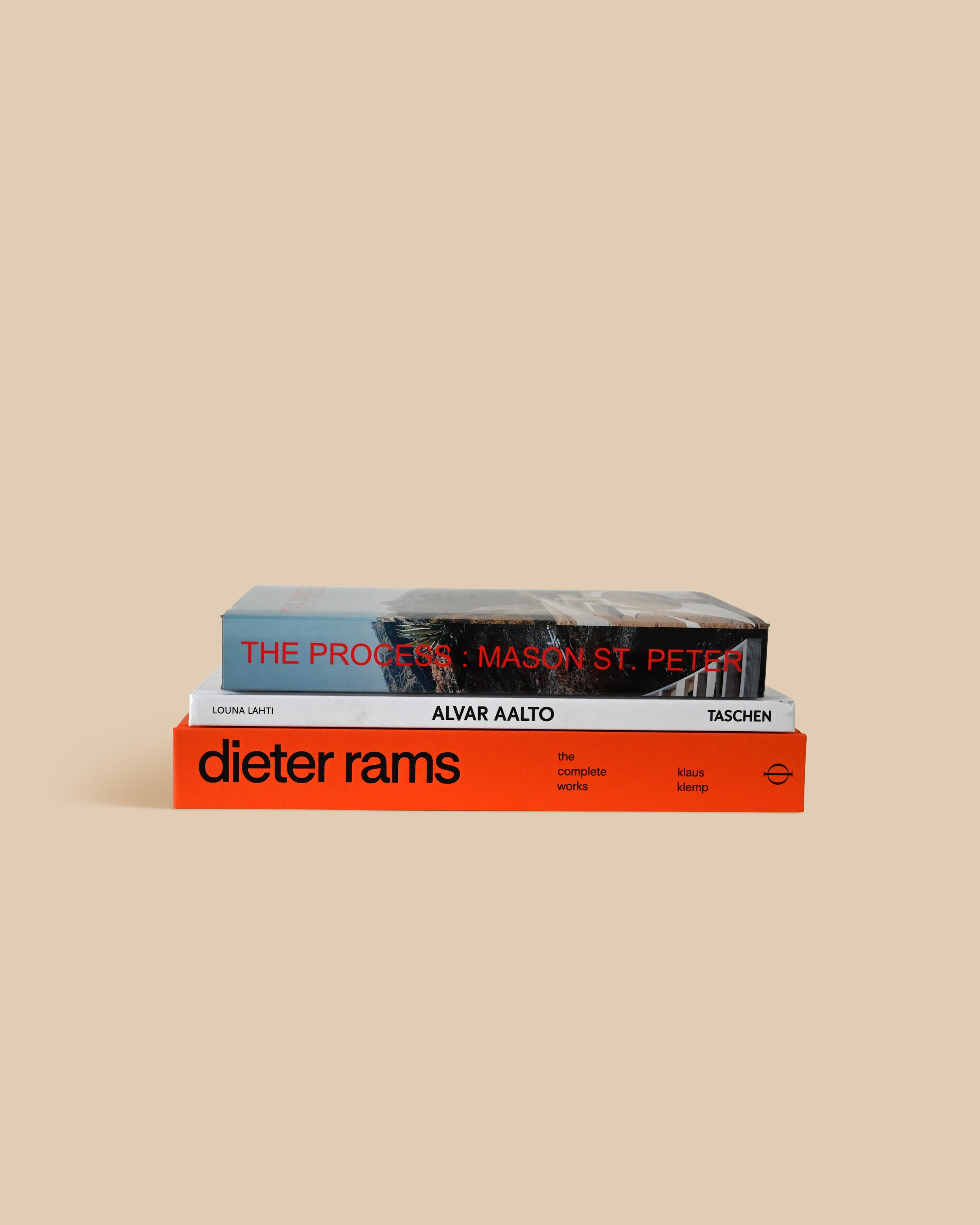 Curated to be as visually pleasing as it is to dive into, we call this one the Architecture Stack: a collection of three rich hue-bound stories architecture books. Each stack is one-of-a-kind—this includes some of our favorites, like The Process Mason St. Peter and Dieter Rams, the Complete Works.