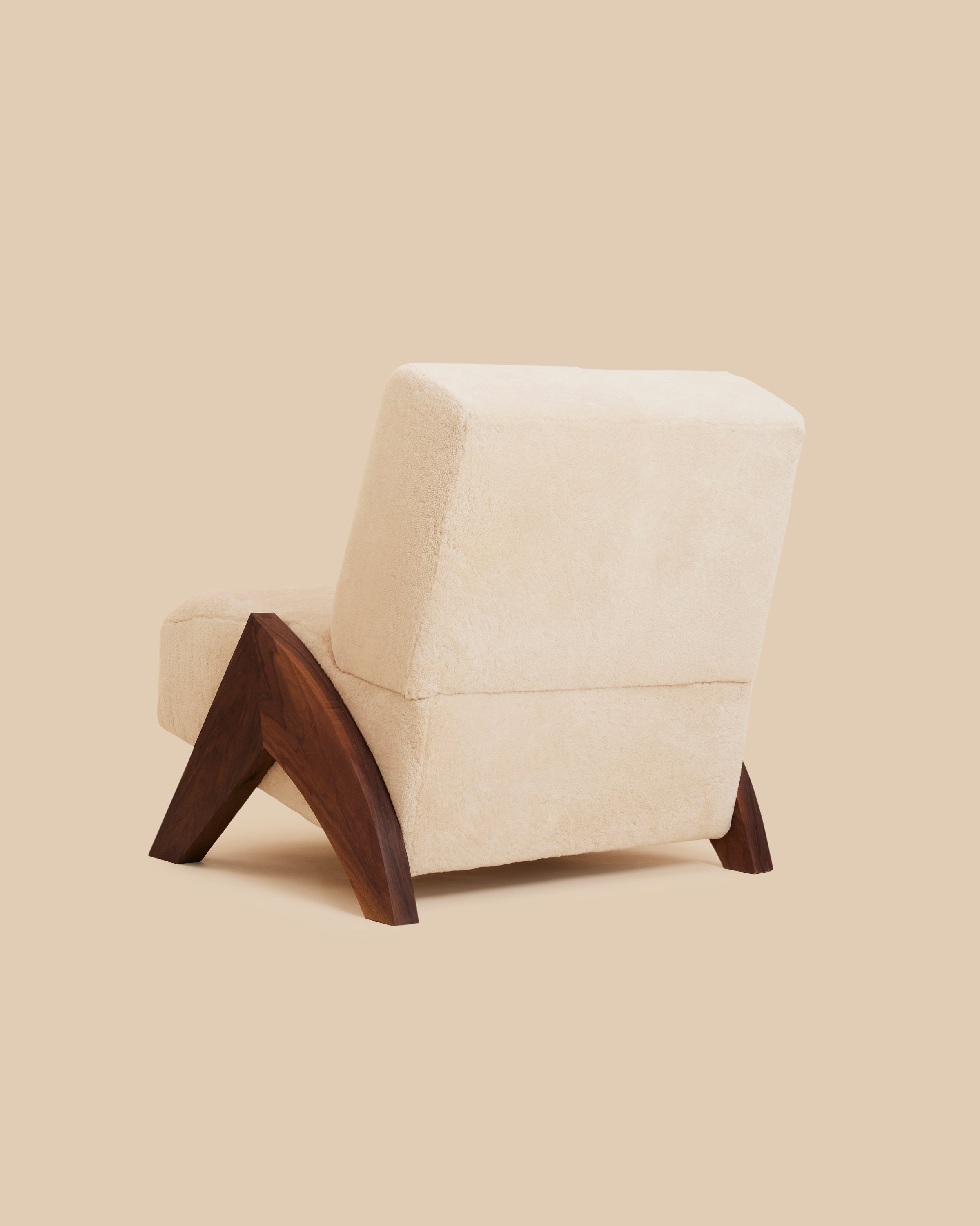 Enzo means "ruler of the home." Designed to live within almost any space, this chair is an elemental grounding piece for the home. Enzo symbolizes strength and celebrates the power of shape. Inspired by Swiss designer Pierre Jeanneret's designs of the 1950s and our shearling outerwear, the Enzo Shearling Chair is handcrafted to order in Brooklyn, NY from fine shearling and black walnut wood harvested along the North Eastern USA.