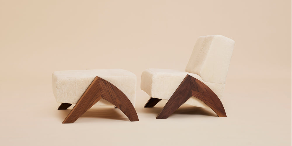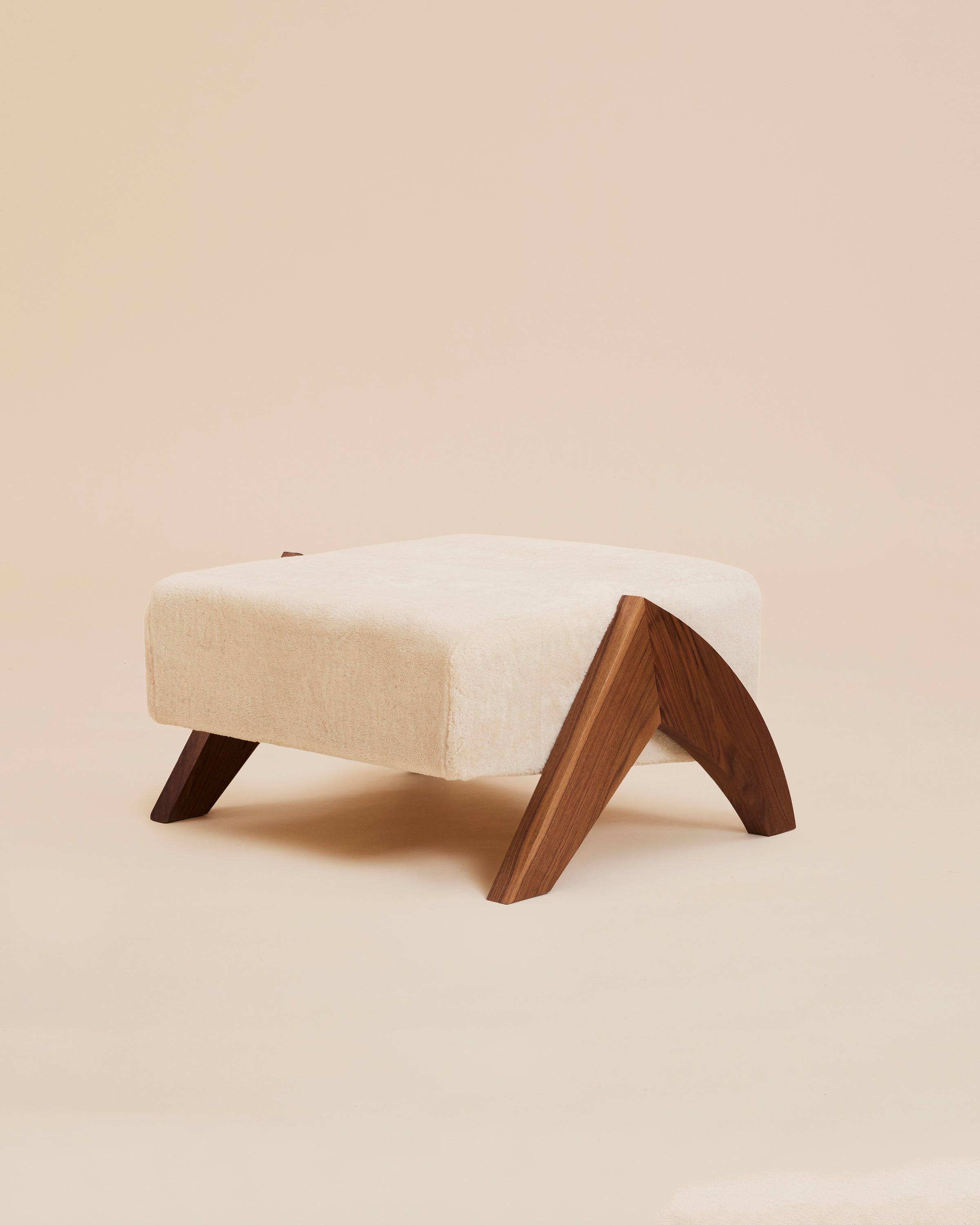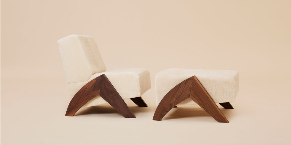 The perfect extension of the Enzo Chair, together the two symbolize strength and comfort. Inspired by our own shearling outerwear, Enzo means "ruler of the home," and is crafted to order in Brooklyn, New York from fine shearling and black walnut harvested along the North East in USA. The cozy shearling seat and walnut wood legs provide elegant comfort.
