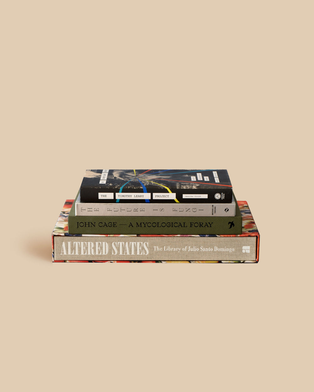 Each hand-selected mix of titles, including some rare and vintage, is sourced in collaboration with the Los Angeles-based Maison Plage. Curated to be as visually pleasing as it is to dive into and sitting elegantly on any bookshelf or coffee table we call this stack of books the The Mushroom Book Stack: offering a deep dive into the fascinating world of fungi. This stack includes: Altered States: The Library of Julio Santo Domingo, John Cage: A Mycological Foray: Variations on Mushrooms, The Future is Fungi, and, The Timothy Leary Project: Inside The Great Counterculture Experiment.