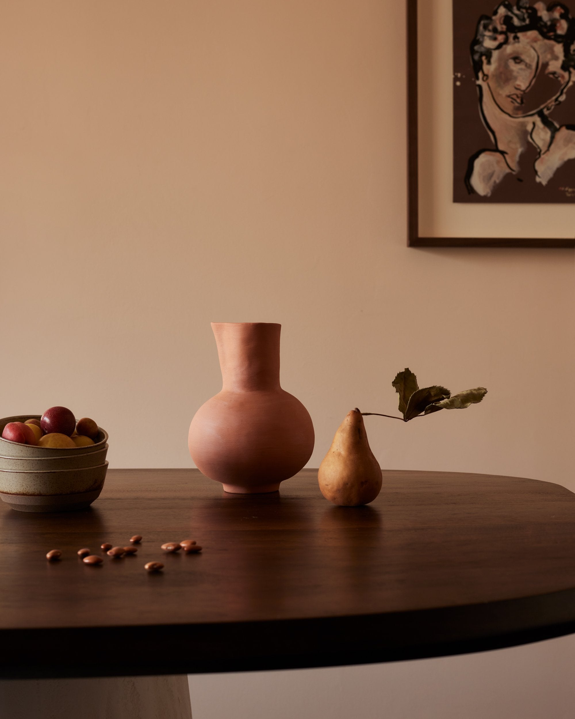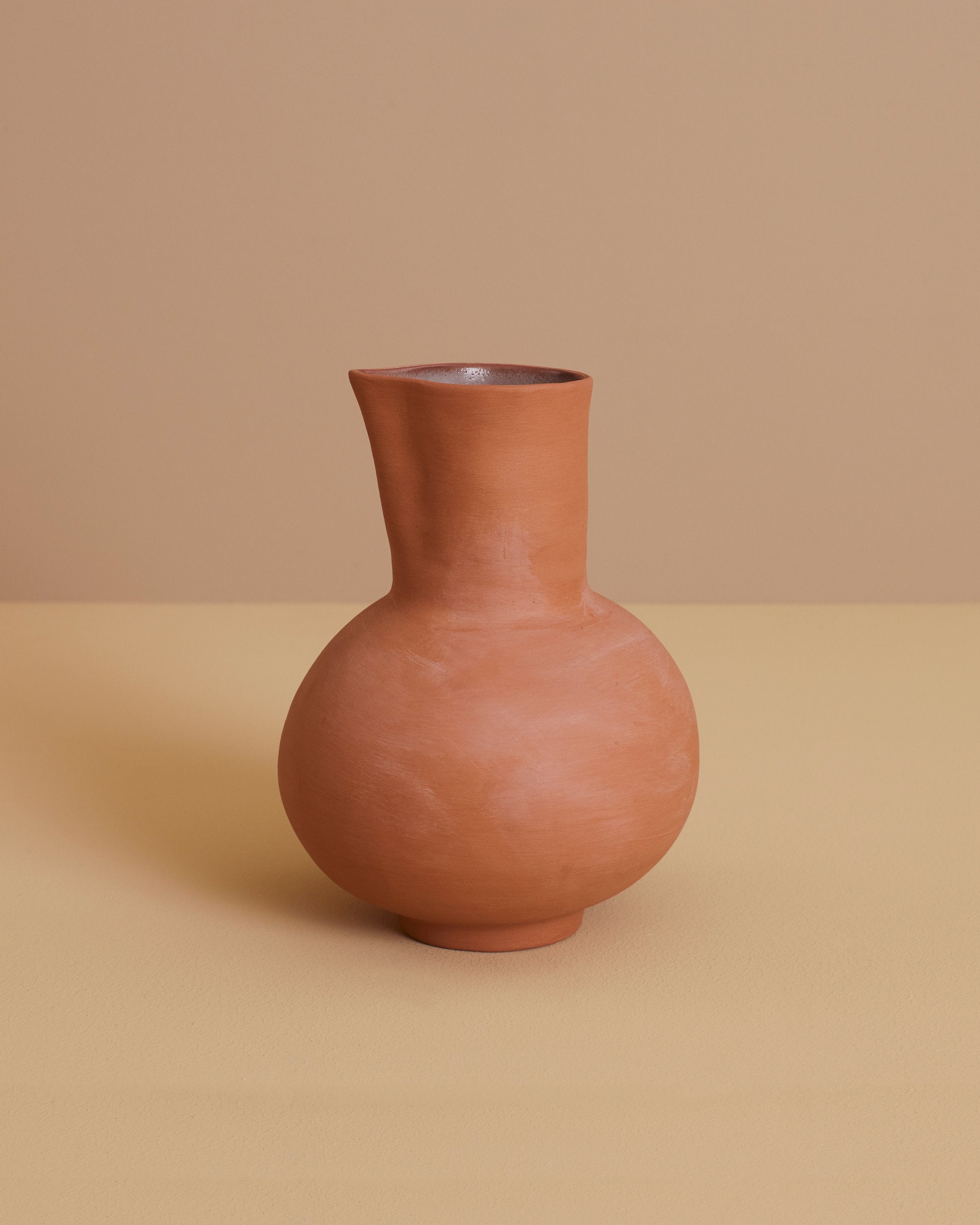 Handmade in Barcelona, Spain by ceramicist Marta Bonilla, this series captures a traditional feeling in almost impossibly thin, delicately crafted modern designs. This elegant terracota water carafe is the perfect table vessel.