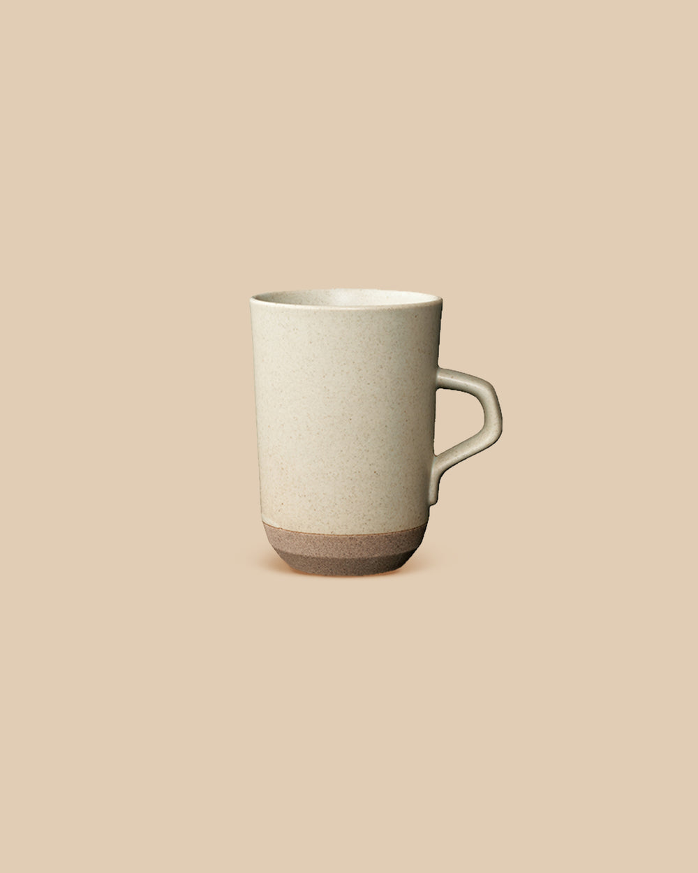 OptionsCoffee or tea, hot drinks are about ritual. This tall coffee mug feels both sturdy and comforting. It features a beige glaze on rough textured clay in a modern, elegant form.