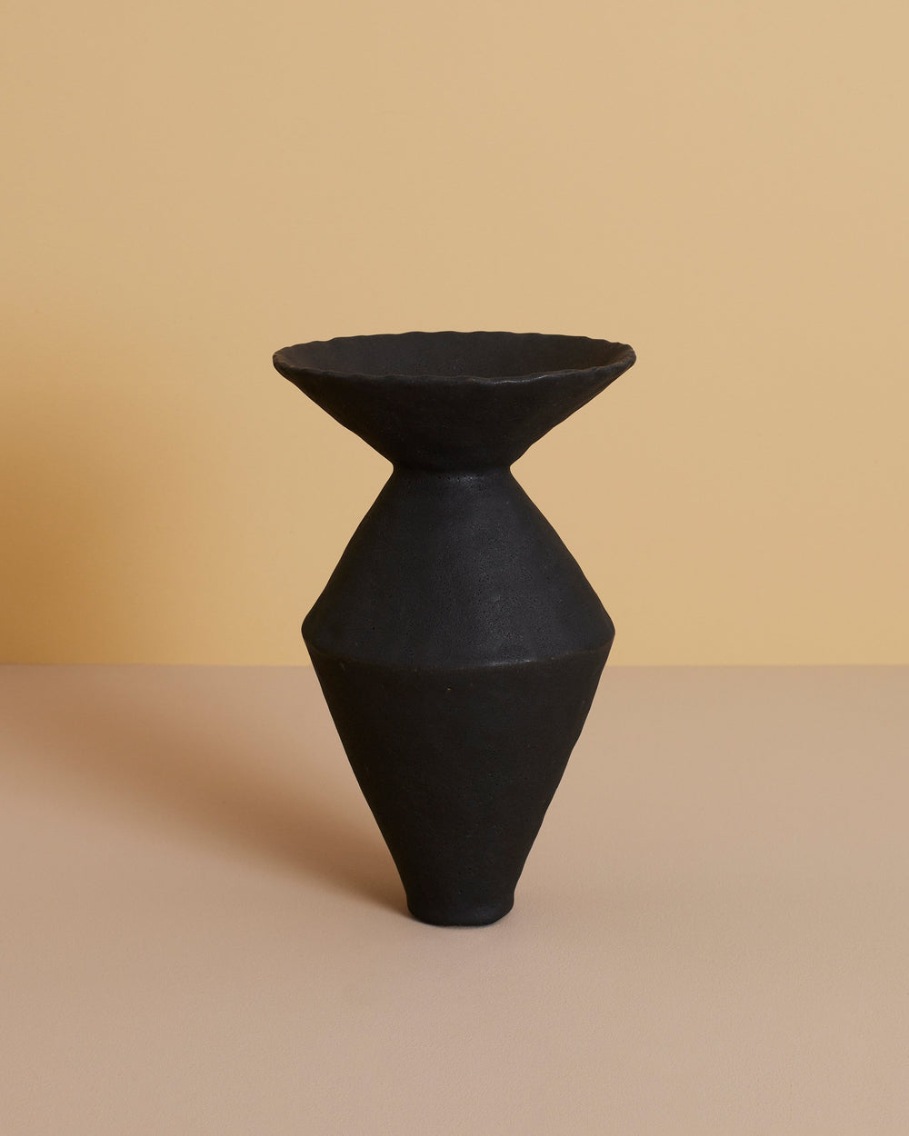 "I have always been interested in the domestic space and how our experiences within the home—a space of intimate exchange—affect and define how we live outside of our homes," says Hicks. This functional zig zag vase, done in a matte Anthracite Black, measures twelve inches by eight inches—sized for a range of uses and designed to sit alongside the rest of the pieces in the series. "I want my work to be part of the beauty of people's everyday lives."