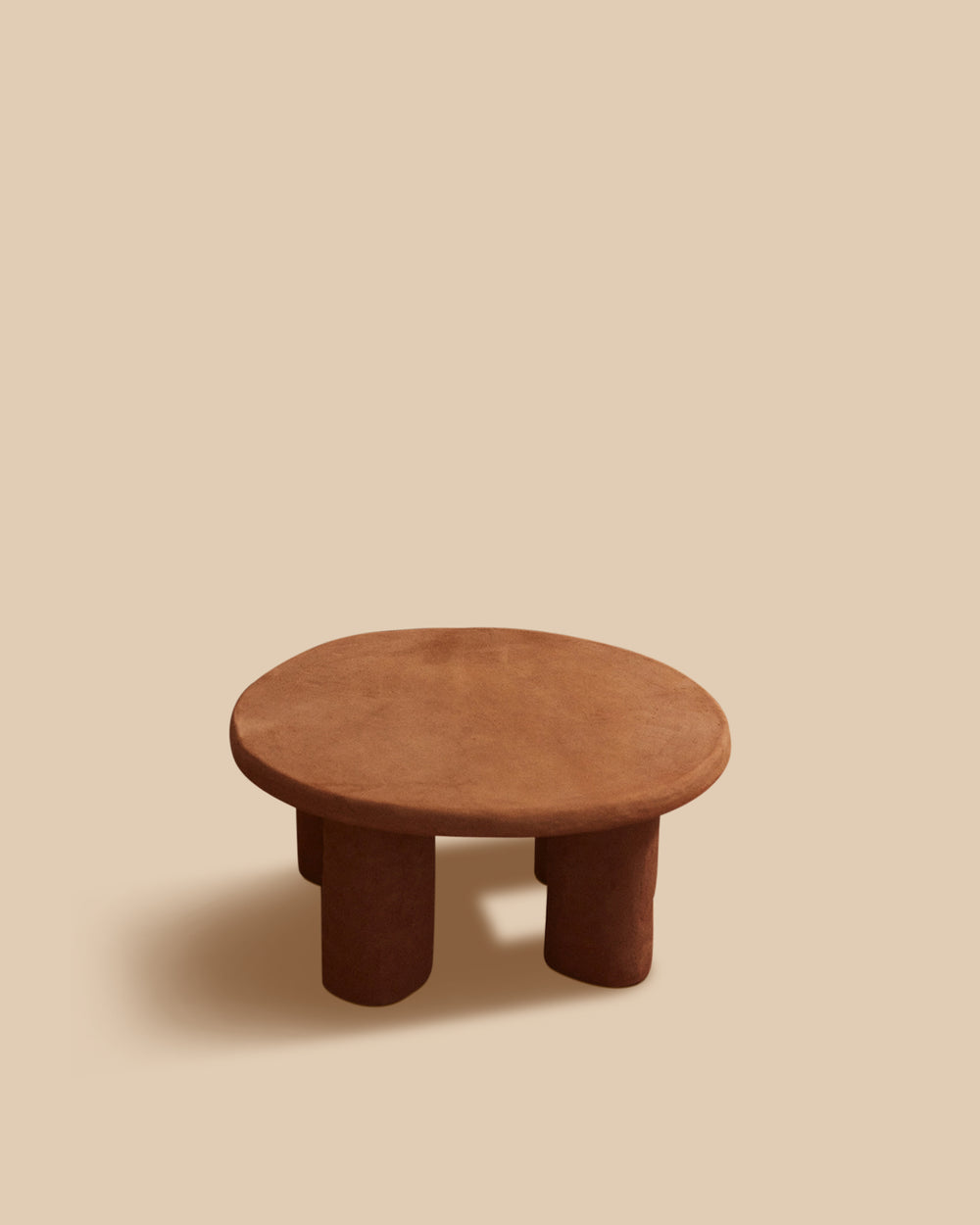 Handmade in Barcelona, Spain by ceramicist Marta Bonilla, this low-side table is created in brown clay stoneware. Allow this compact accent table to bring personality and a mediterranean warmth to any room. This piece measures 20cm high with a diameter of 39cm.
