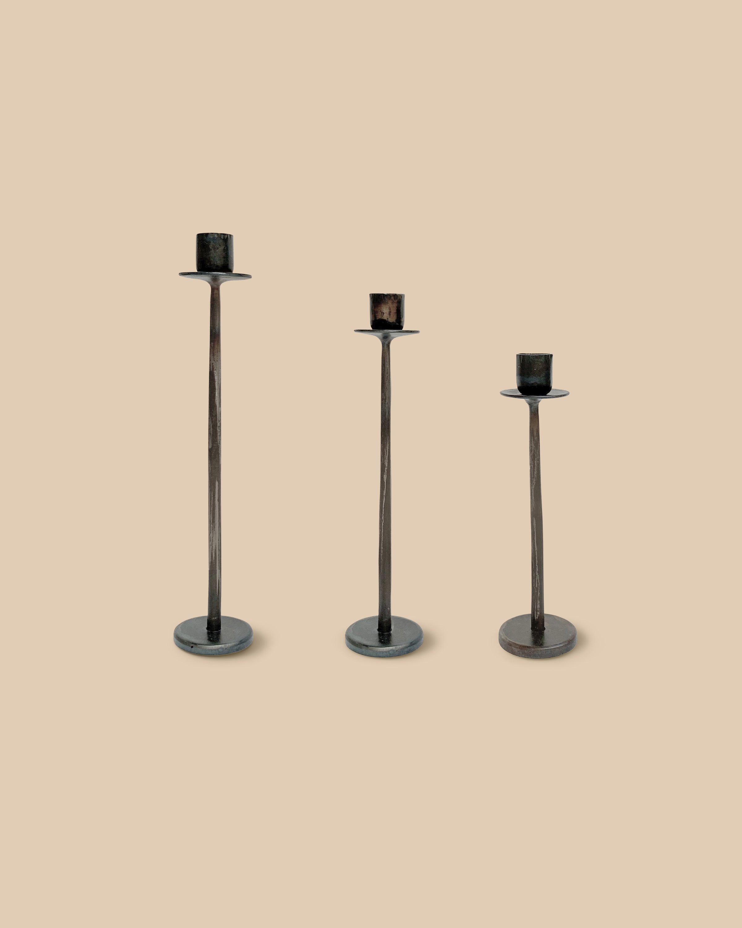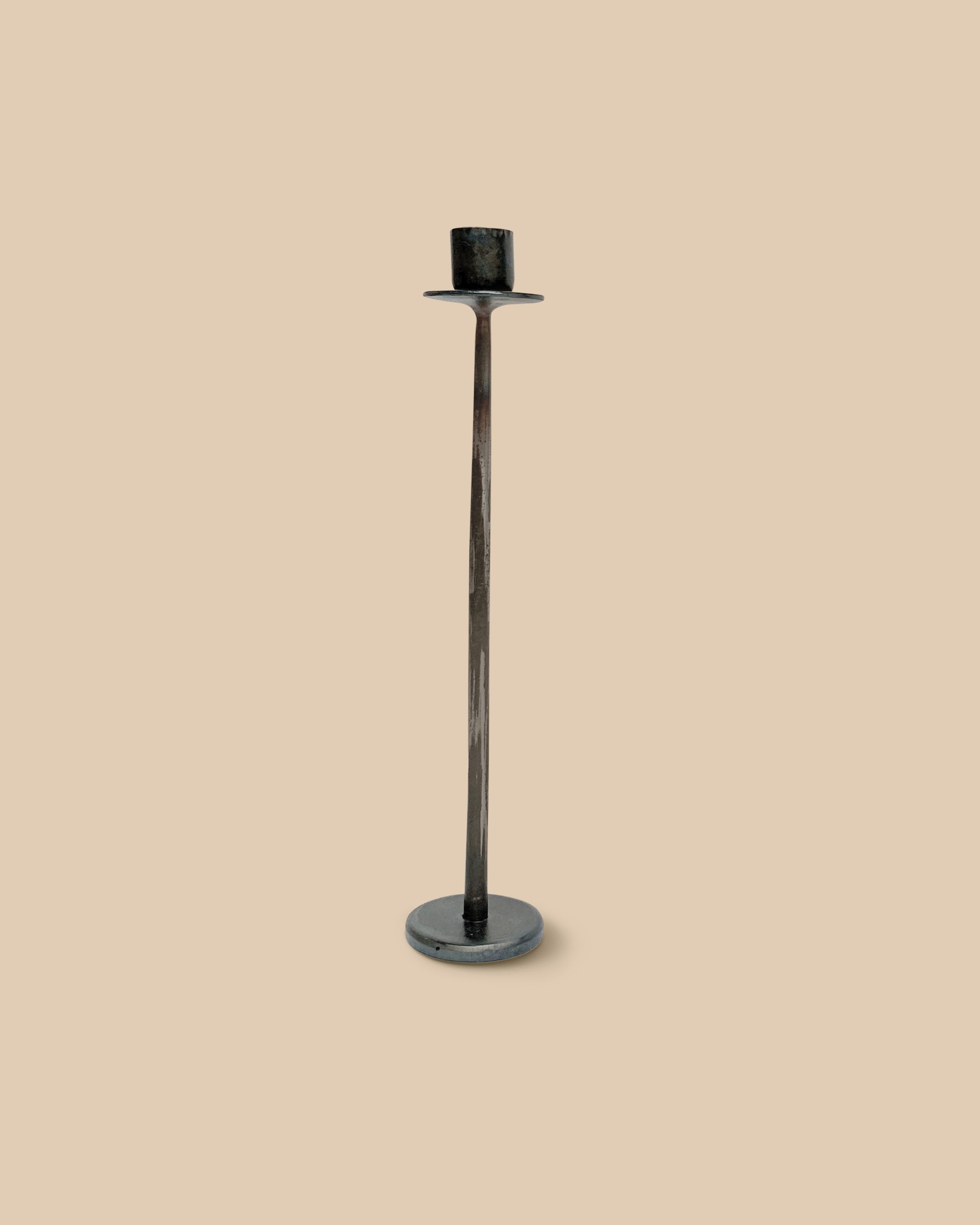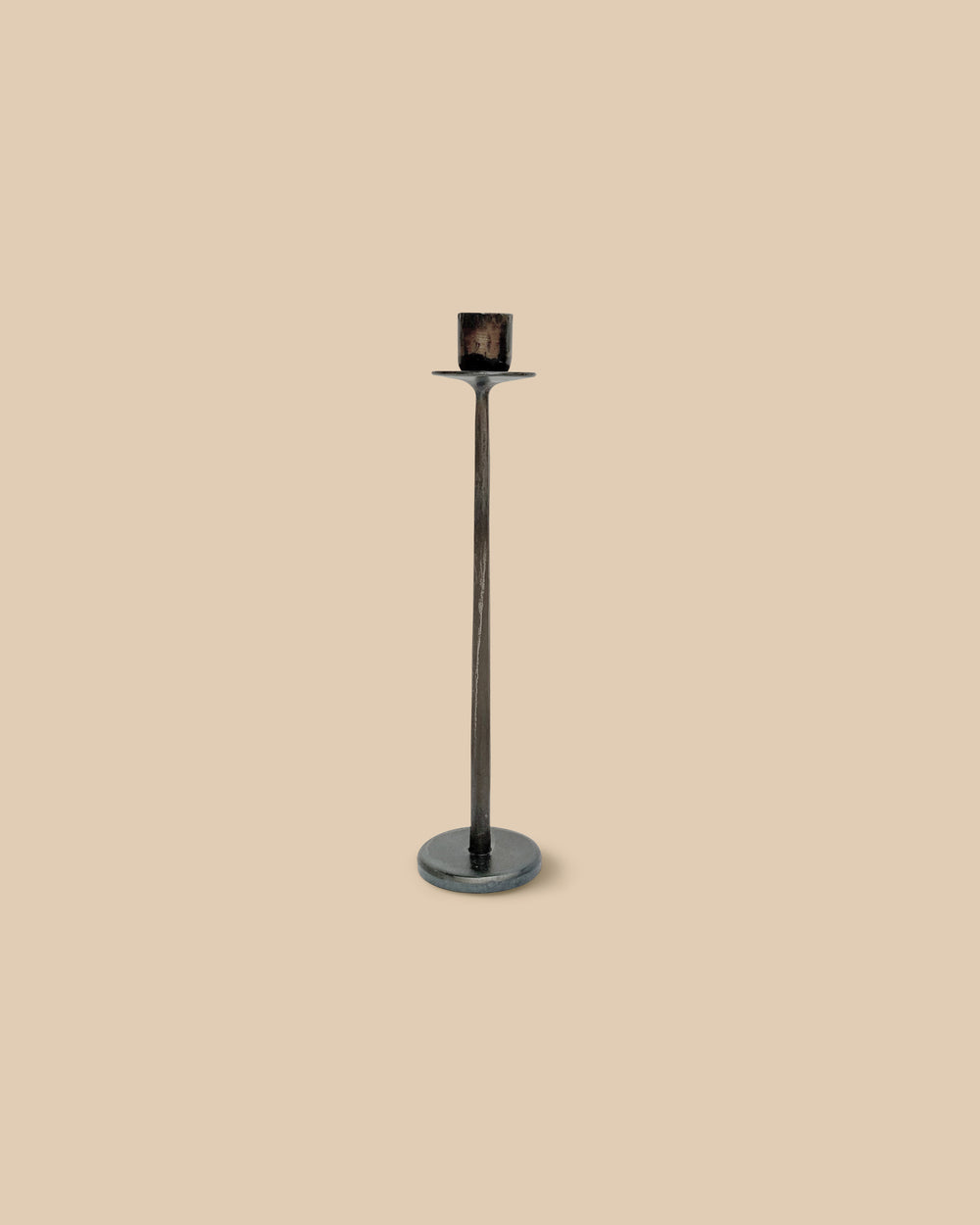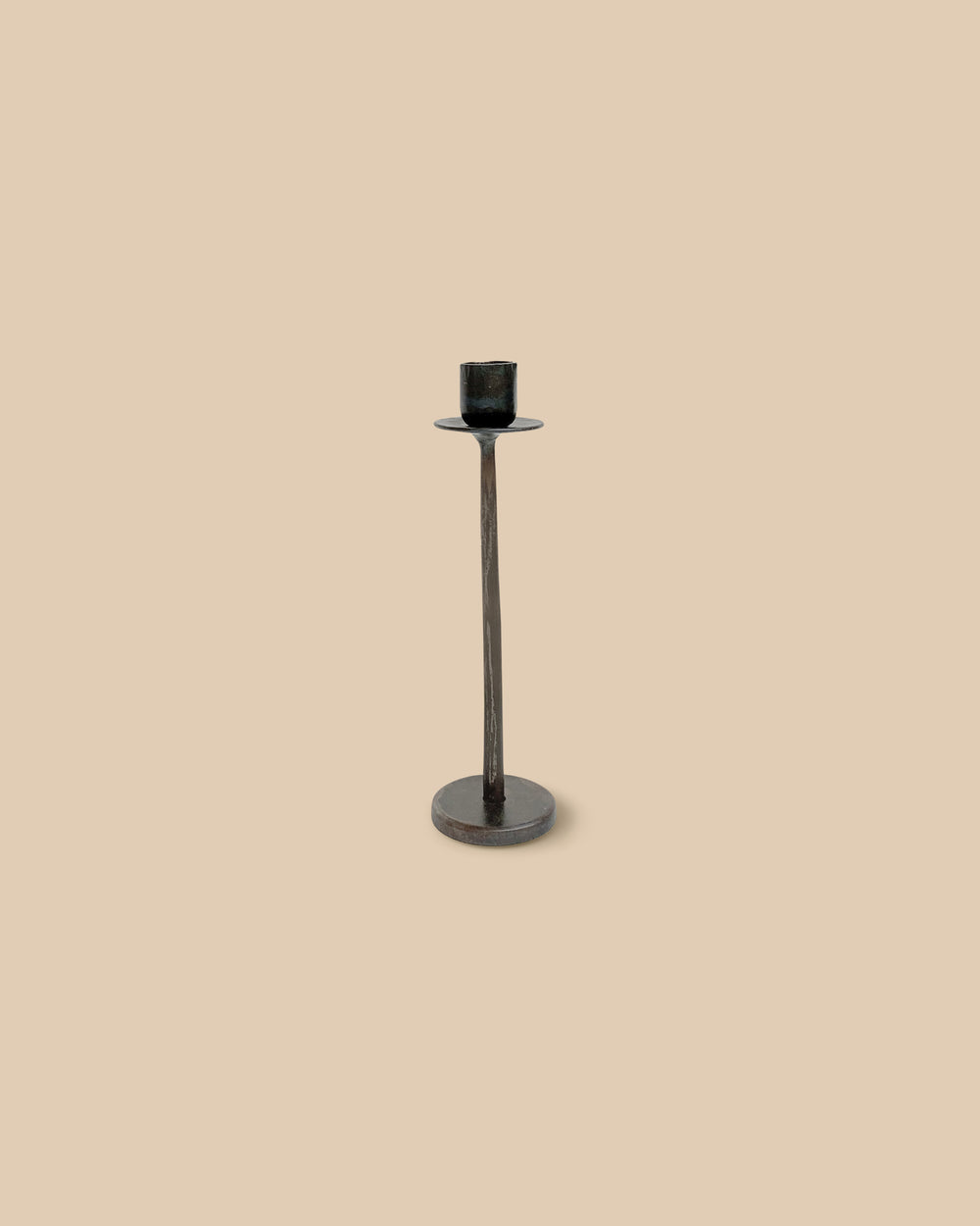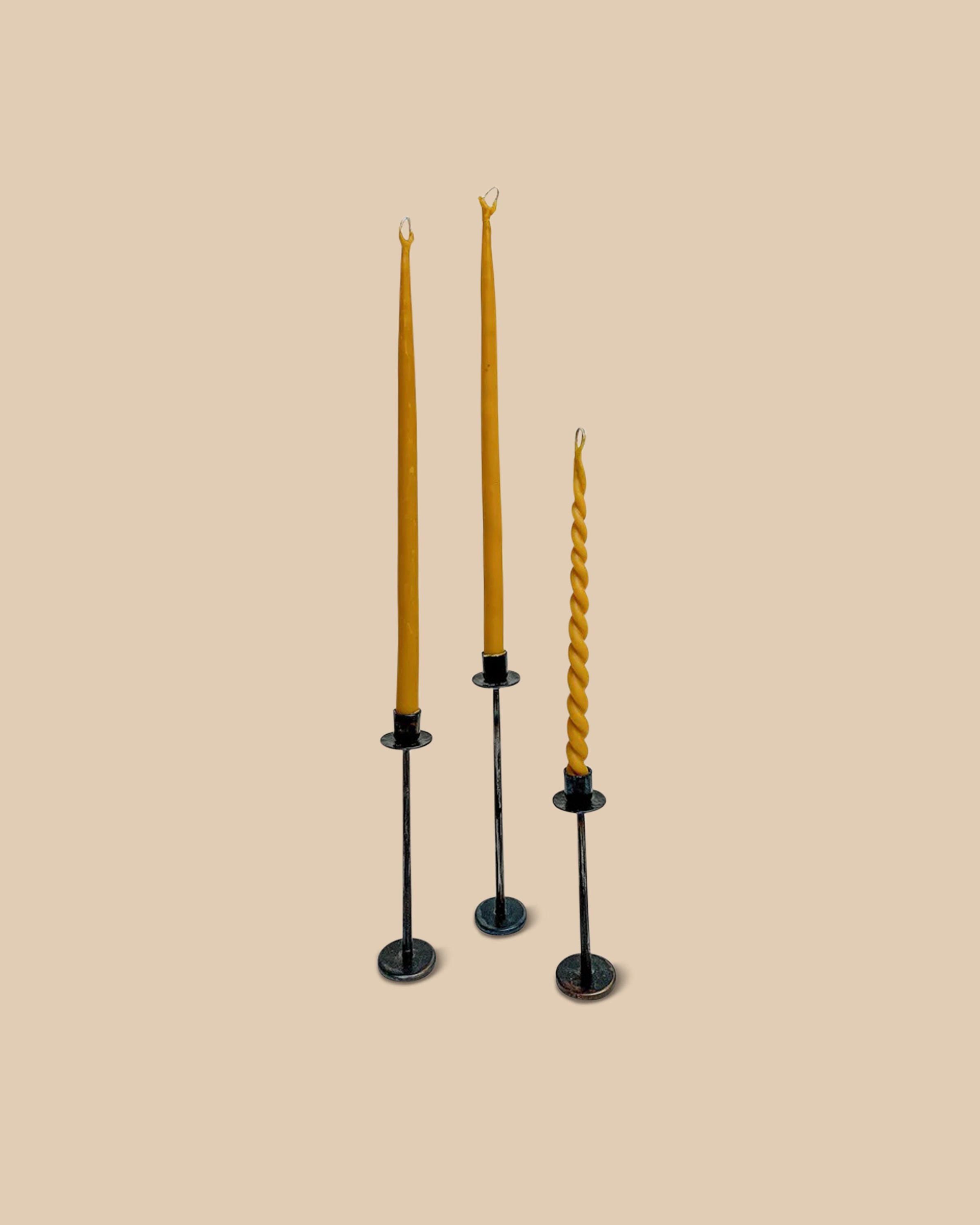 Il Buco Vita's simple wrought iron candle sticks are hand forged in Umbria, Italy. This process, one of the oldest known metalworking techniques, involves heating a piece of iron until malleable and then applying a range of tools to flatten and stretch the metal with care to the desired shape. Wipe clean with a soft damp cloth. We suggest to buy in multiples for a unique table centerpiece. Ideal for Collepino Twist or Taper Candles in beeswax.