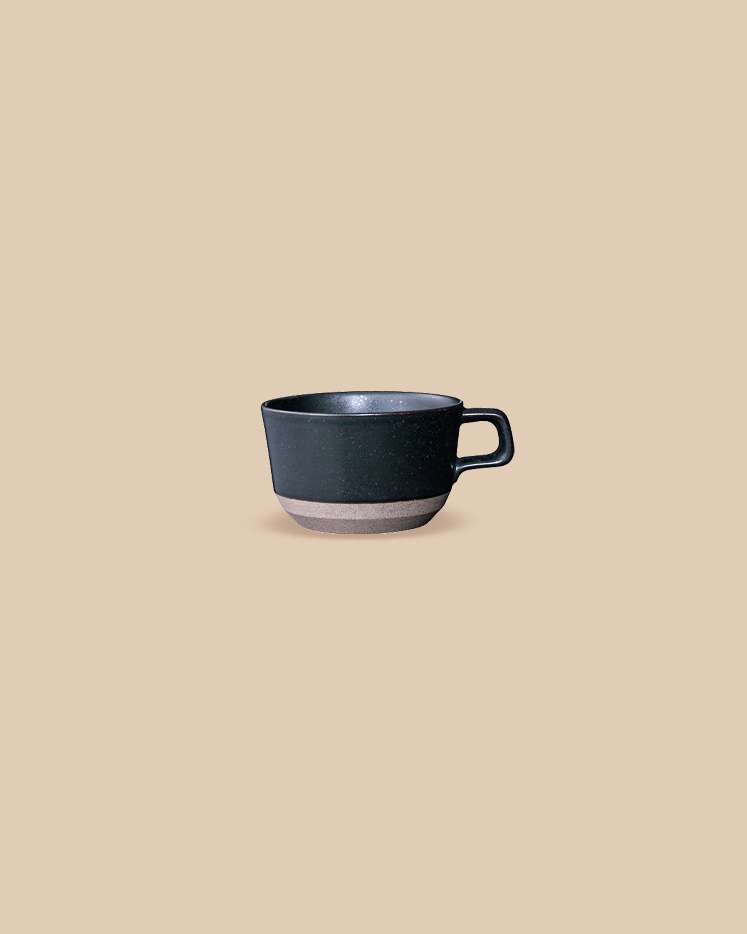 OptionsCoffee or tea, hot drinks are about ritual. This wide ceramic mug is handmade by Kinto and features an elegant form of textured clay with black glazing.