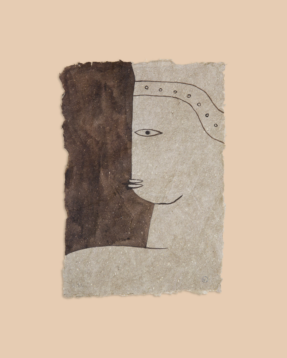 KALIMERA ! (2025), meaning “Good Morning” in Greek, greets the viewer with a serene, split-faced portrait. One side emerges in warm, earthen washes, the other in raw linen texture—an elegant dialogue between light and shadow, presence and pause. For Framing Options please email info@arje.com.