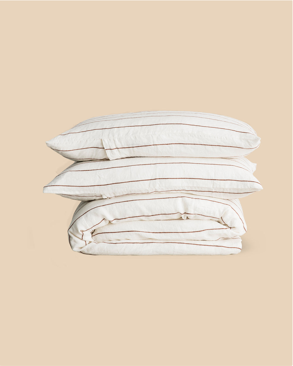 Few things are better for you than a good night's sleep. Bring serenity to your space with Cultiver's hand-woven striped Linen Duvet Cover and pillowcases. Linen, a breathable fiber derived from flax, is more durable than cotton, yet is soft temperature regulating and incredibly comfortable year-round.