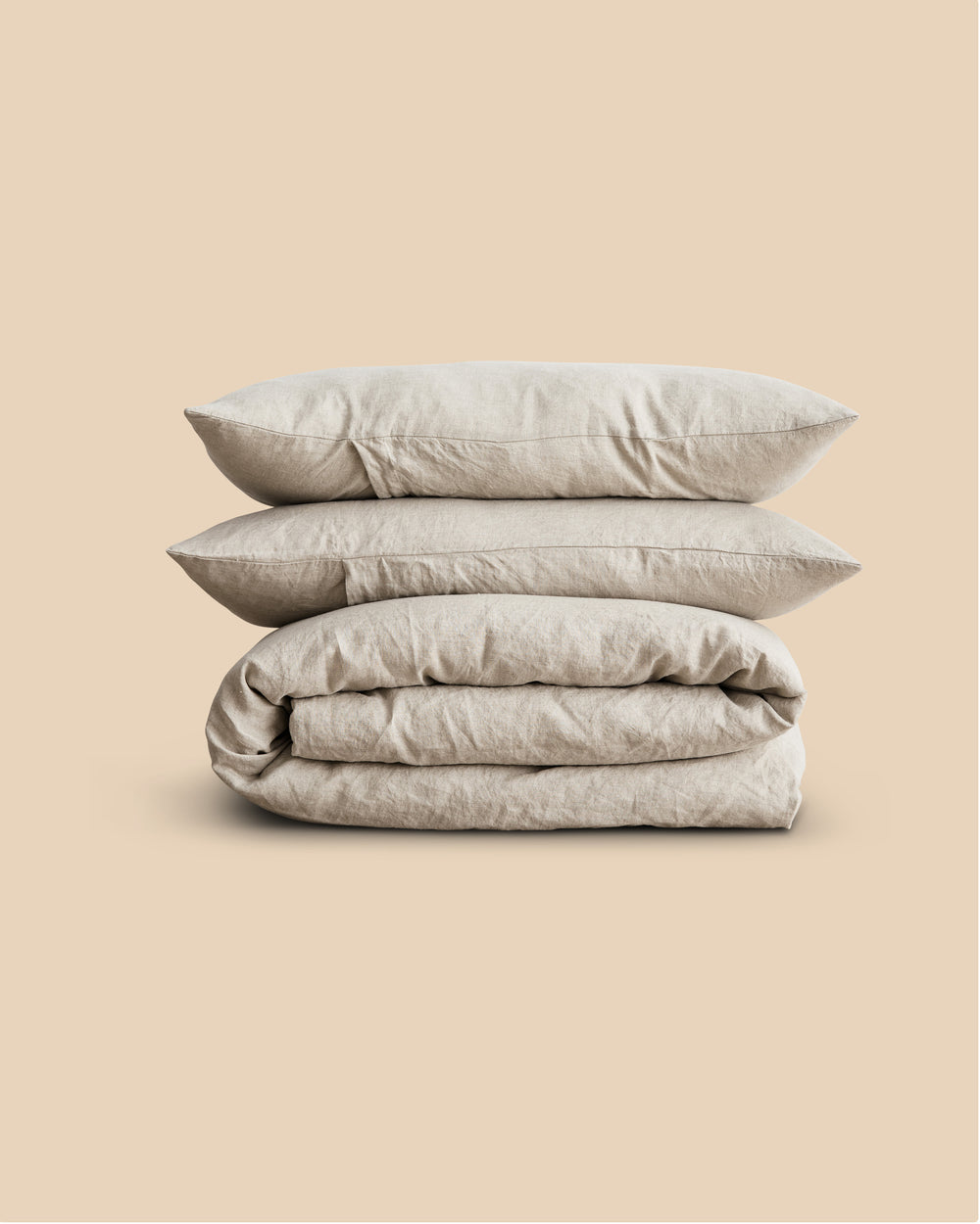Cultiver weaves their linen bedding from pure European flax, washes it for added softness, and offers a range of beautiful colors that showcase linen's natural texture while bringing warmth and calm to the bedroom. This Natural Duvet set includes a duvet cover finished with a button closure and two pillowcases.