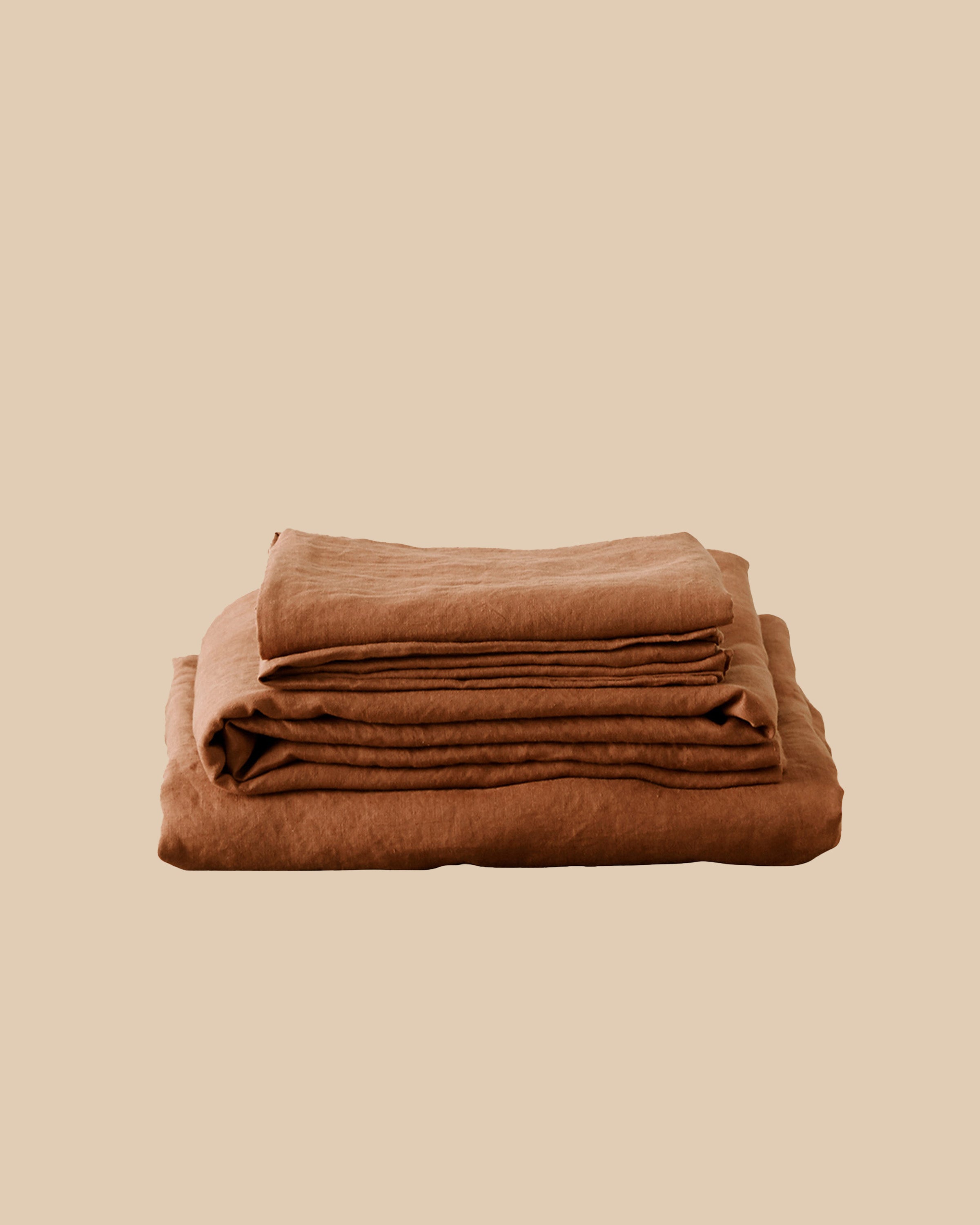 OptionsFew things are better for you than a good night's sleep. Cultiver's Bohemian-style terracotta Linen Sheet Set + Pillowcases of 100% Euro flax from Portugal are the perfect way to add a cozy touch to your bedroom. Linen, a breathable fiber derived from flax, is more durable than cotton, yet is soft and temperature regulating and incredibly comfortable year-round.