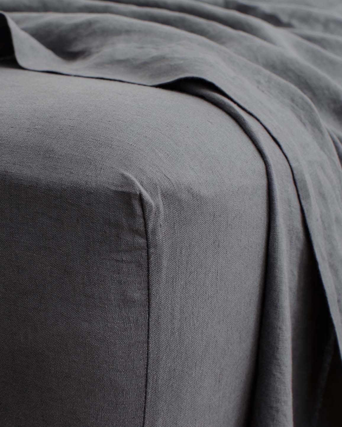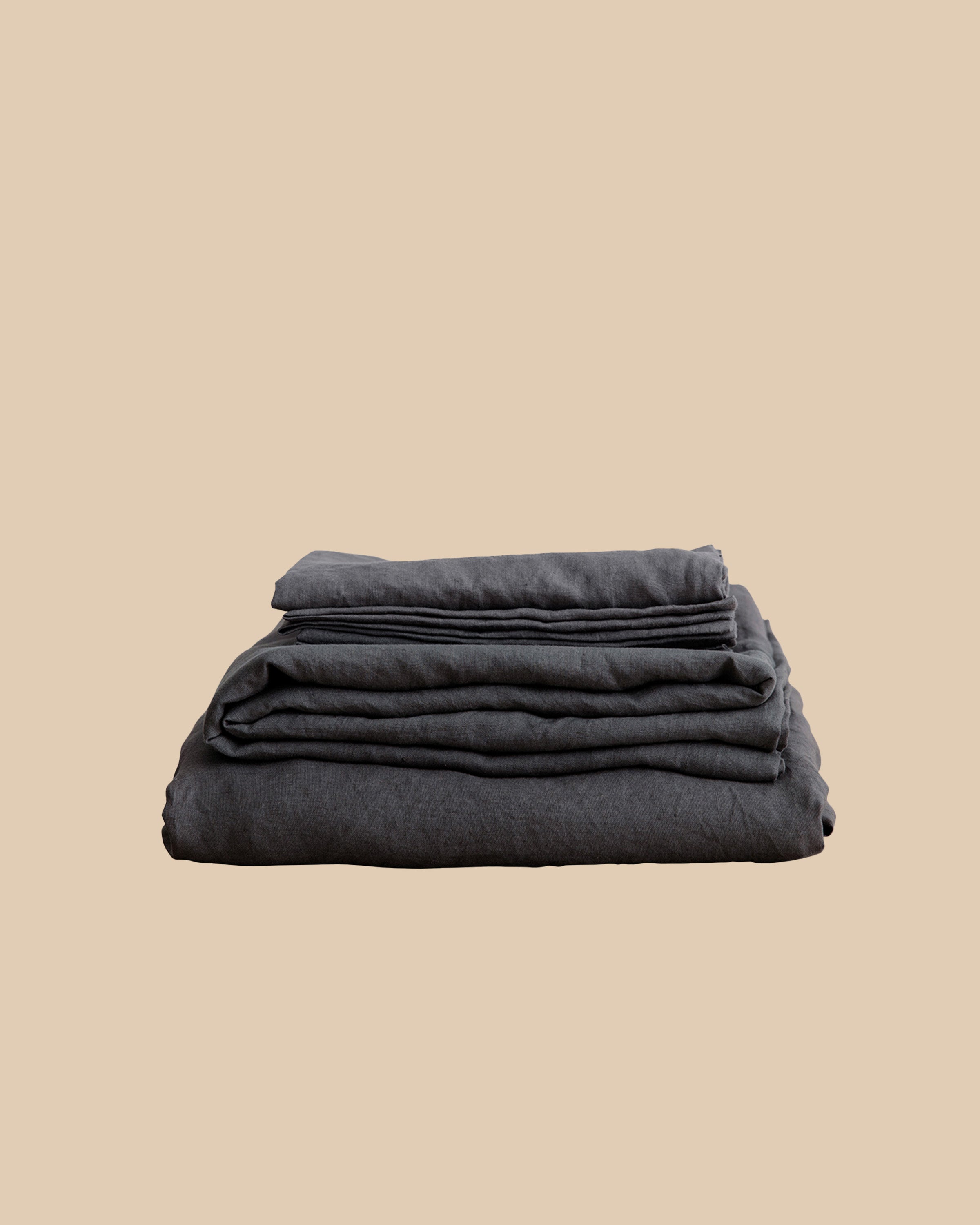 Cultiver weaves their linen bedding from pure European flax, washes it for added softness, and offers a range of beautiful colors that showcase linen's natural texture while bringing warmth and calm to the bedroom.This Slate set includes two pillowcases, one flat sheet, and one fitted sheet, and pairs nicely with the Natural set for a gentle contrast.
