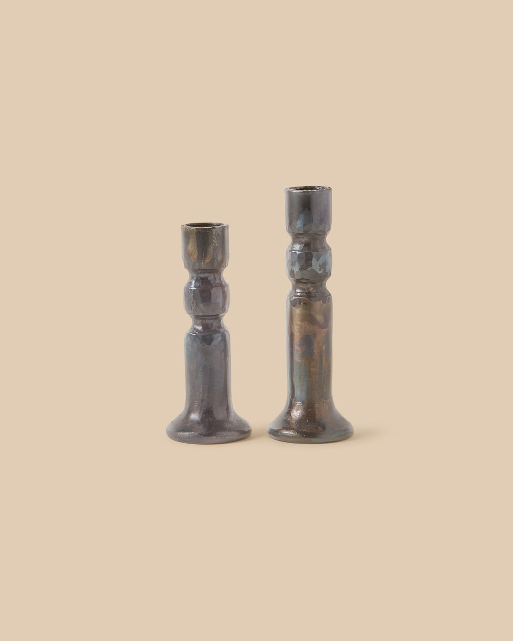 OptionsIl Buco Vita's simple wrought iron candle sticks are hand forged in Umbria, Italy. This process, one of the oldest known metalworking techniques, involves heating a piece of iron until malleable and then applying a range of tools to flatten and stretch the metal with care to the desired shape. Ideal for our Collepino Twist and Taper Candles in beeswax. Wipe clean with a soft damp cloth. We suggest to buy in multiples for a unique table centerpiece.